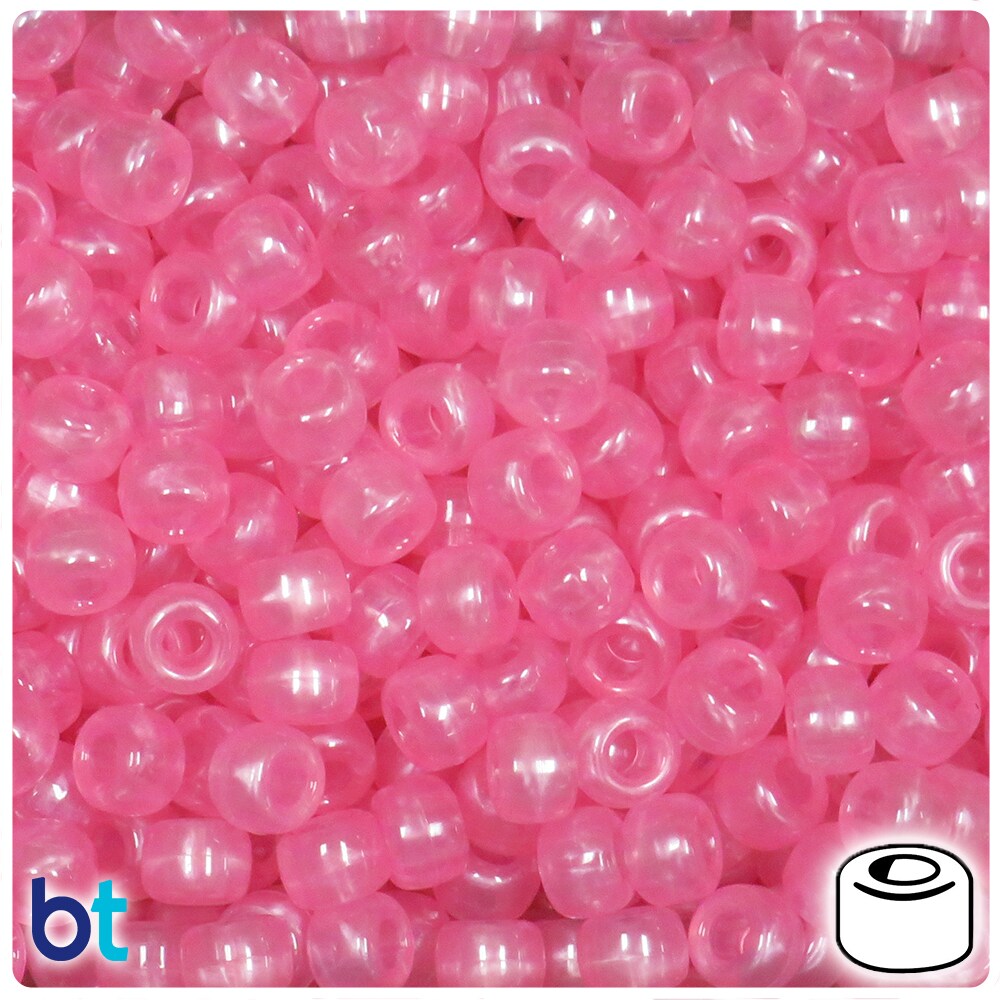 BeadTin Pink Adrenaline Translucent 9mm Barrel Pony Beads (500pcs)