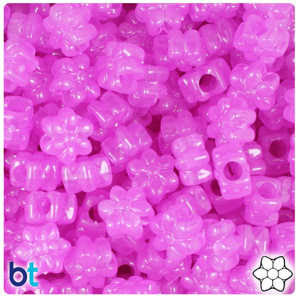 BeadTin Purple Glow 13mm Flower Plastic Pony Beads (250pcs)