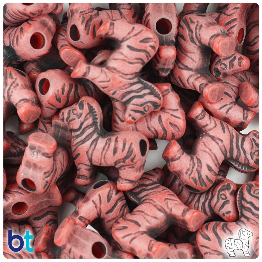 BeadTin Red Antique 22mm Zebra Plastic Pony Beads (24pcs)