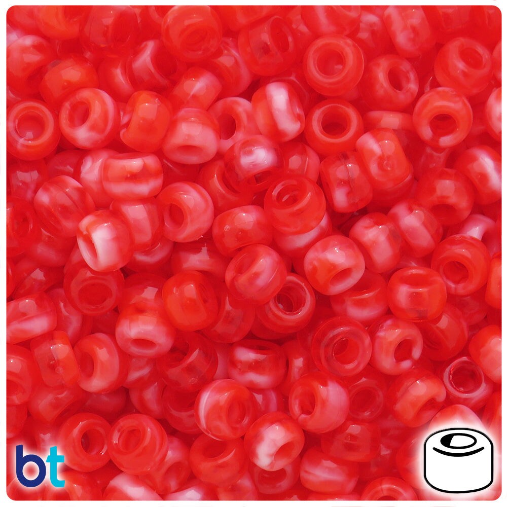 BeadTin Red Marbled 9x6mm Barrel Plastic Pony Beads (300pcs)
