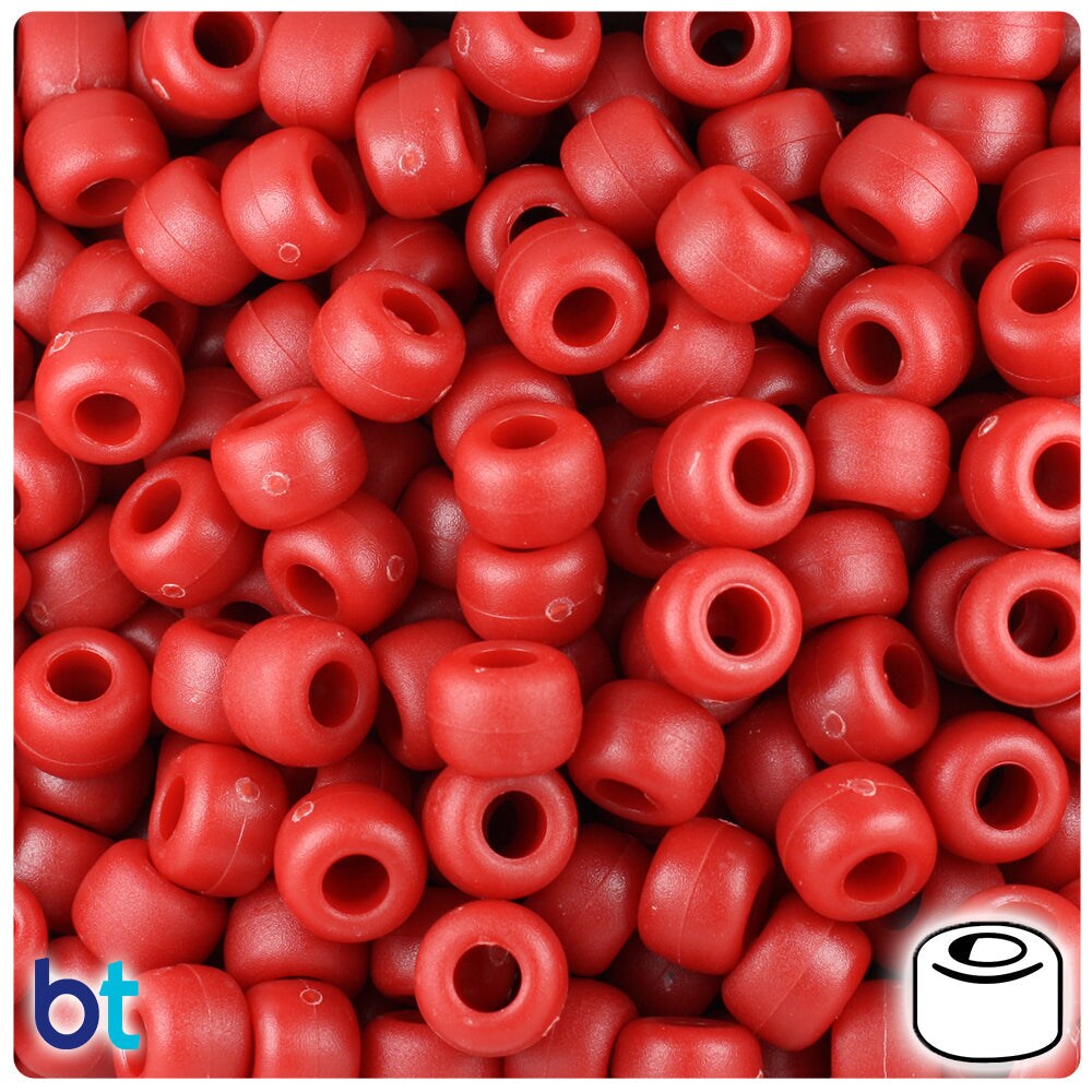 BeadTin Red Matte 9mm Barrel Plastic Pony Beads (500pcs)
