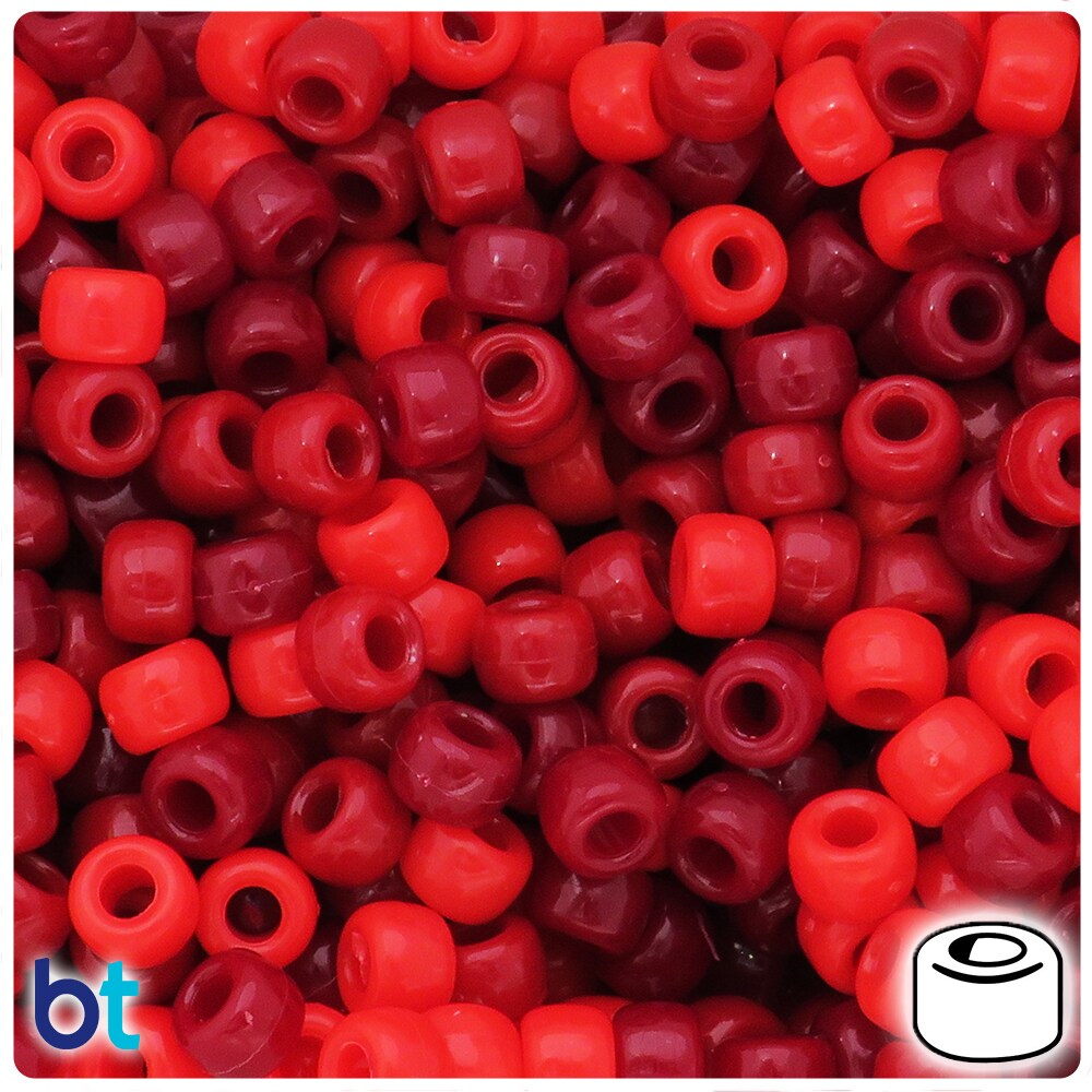 BeadTin Red Ombre Opaque Mix 9mm Barrel Pony Beads (500pcs)