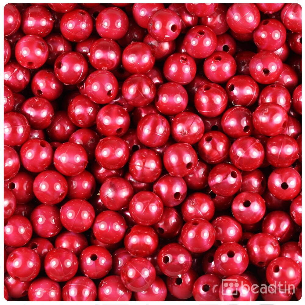 BeadTin Red Pearl 8mm Round Plastic Craft Beads (300pcs)