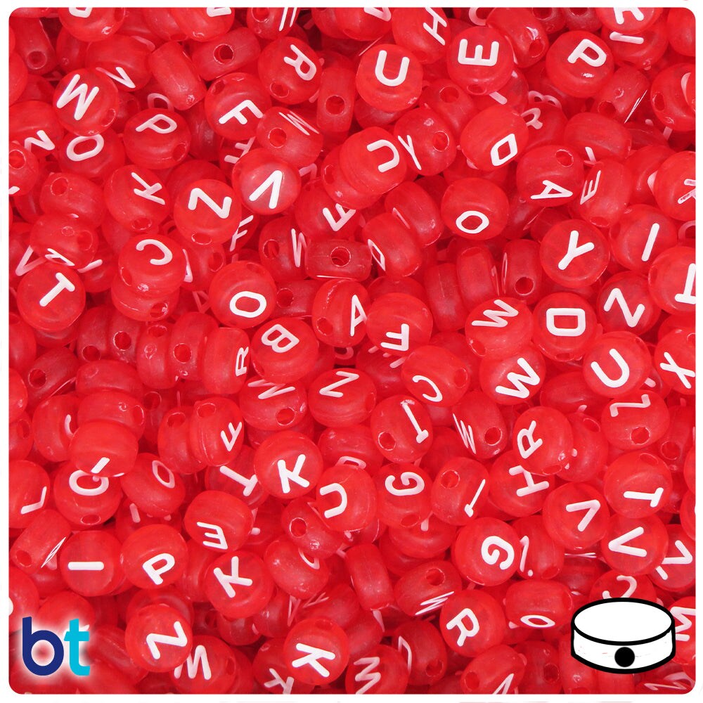BeadTin Red Transparent 7mm Coin Plastic Alpha Beads - White Letter Mix (250pcs)