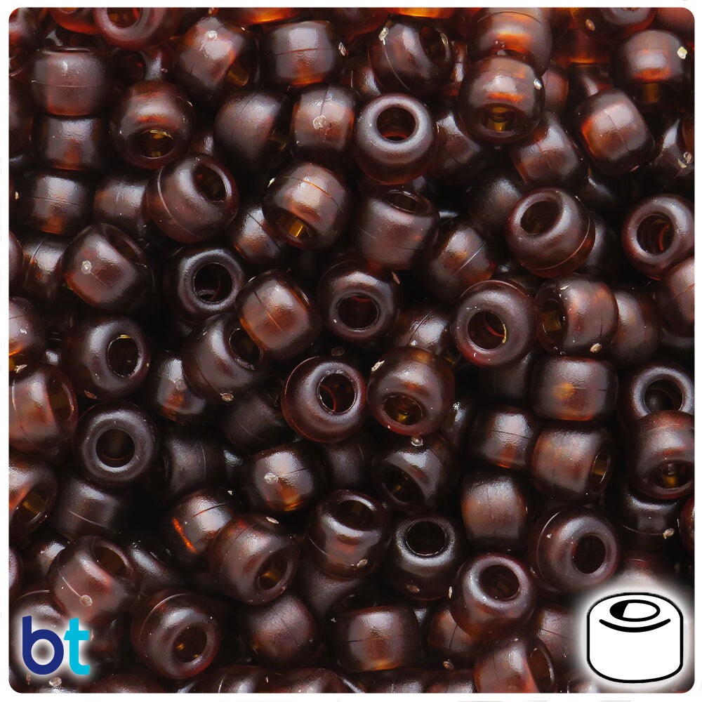 BeadTin Root Beer Frosted 9mm Barrel Plastic Pony Beads (500pcs)