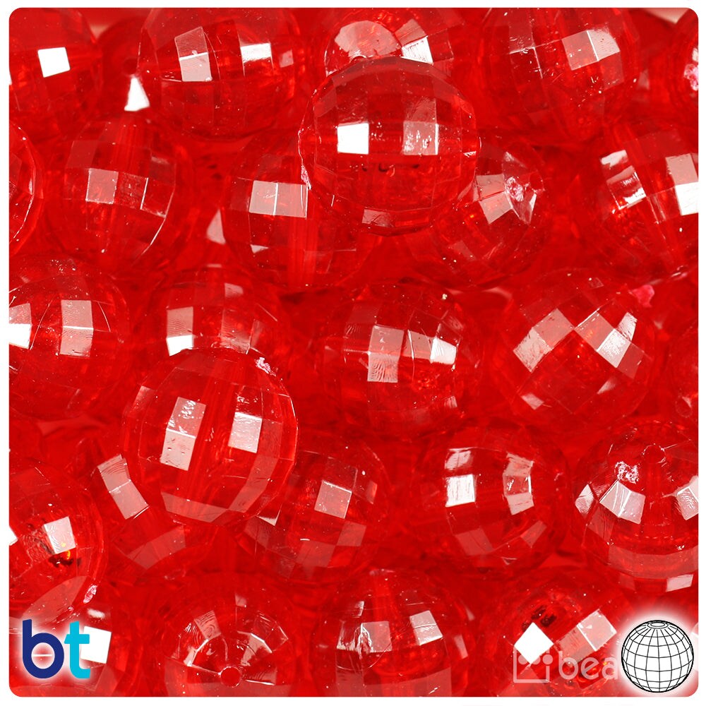 BeadTin Ruby Transparent 18mm Faceted Globe Plastic Craft Beads (12pcs)