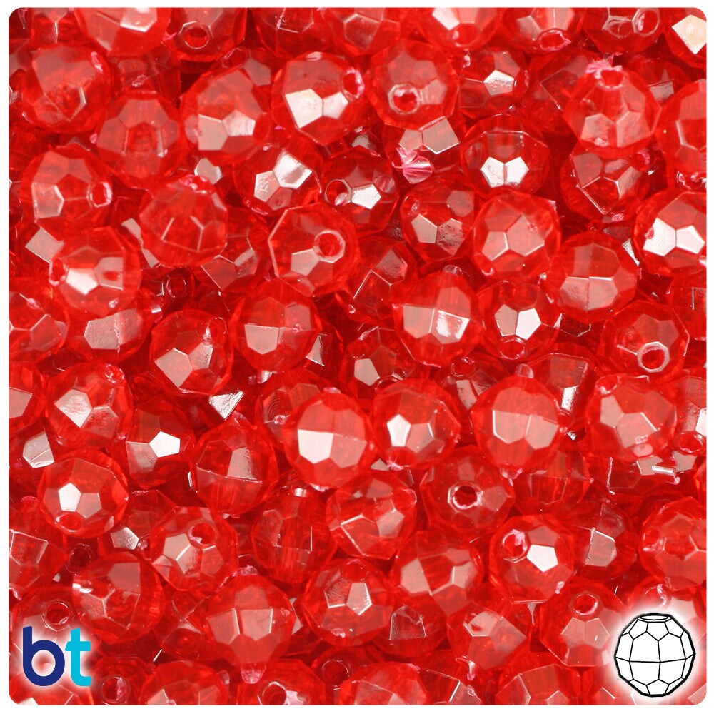 BeadTin Ruby Transparent 8mm Faceted Round Plastic Craft Beads (450pcs)