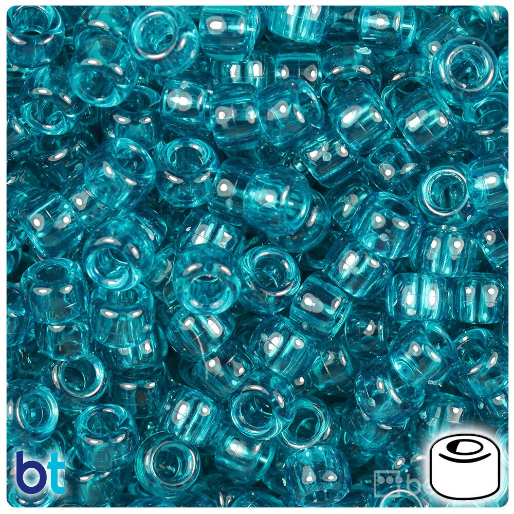 BeadTin Teal Transparent 9mm Barrel Plastic Pony Beads (500pcs)