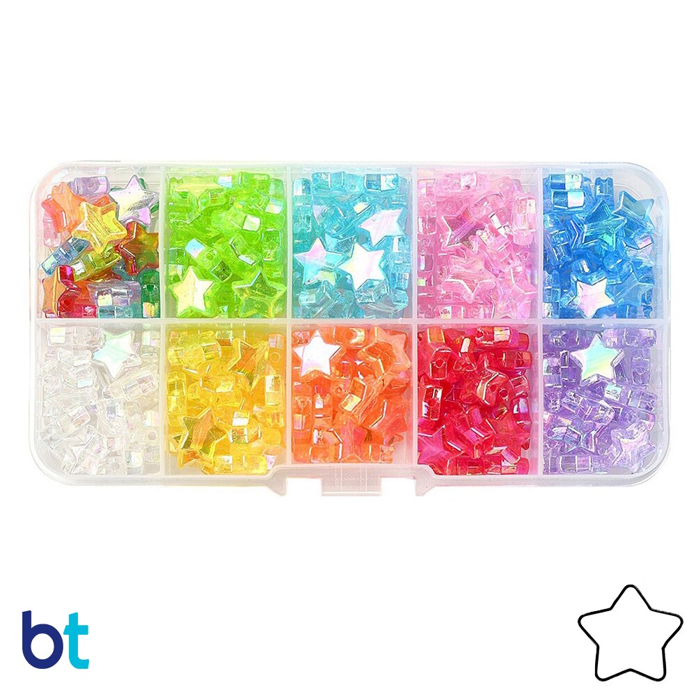 BeadTin Transparent AB 10mm Star Plastic Beads (Box/9 Colors)