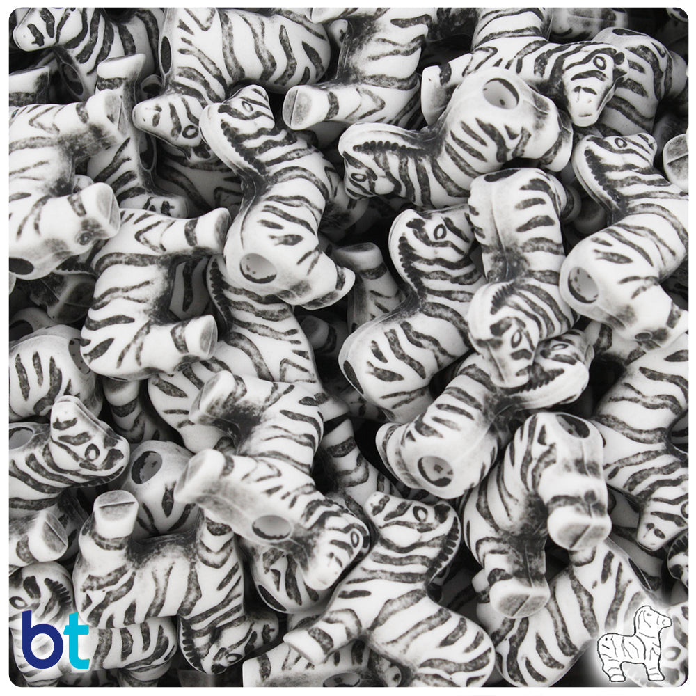 BeadTin White Antique 22mm Zebra Plastic Pony Beads (24pcs)