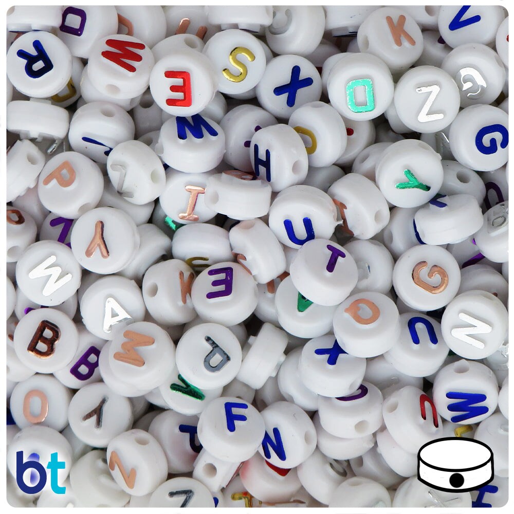 BeadTin White Opaque 10mm Coin Plastic Alpha Beads - Colored Letter Mix (144pcs)