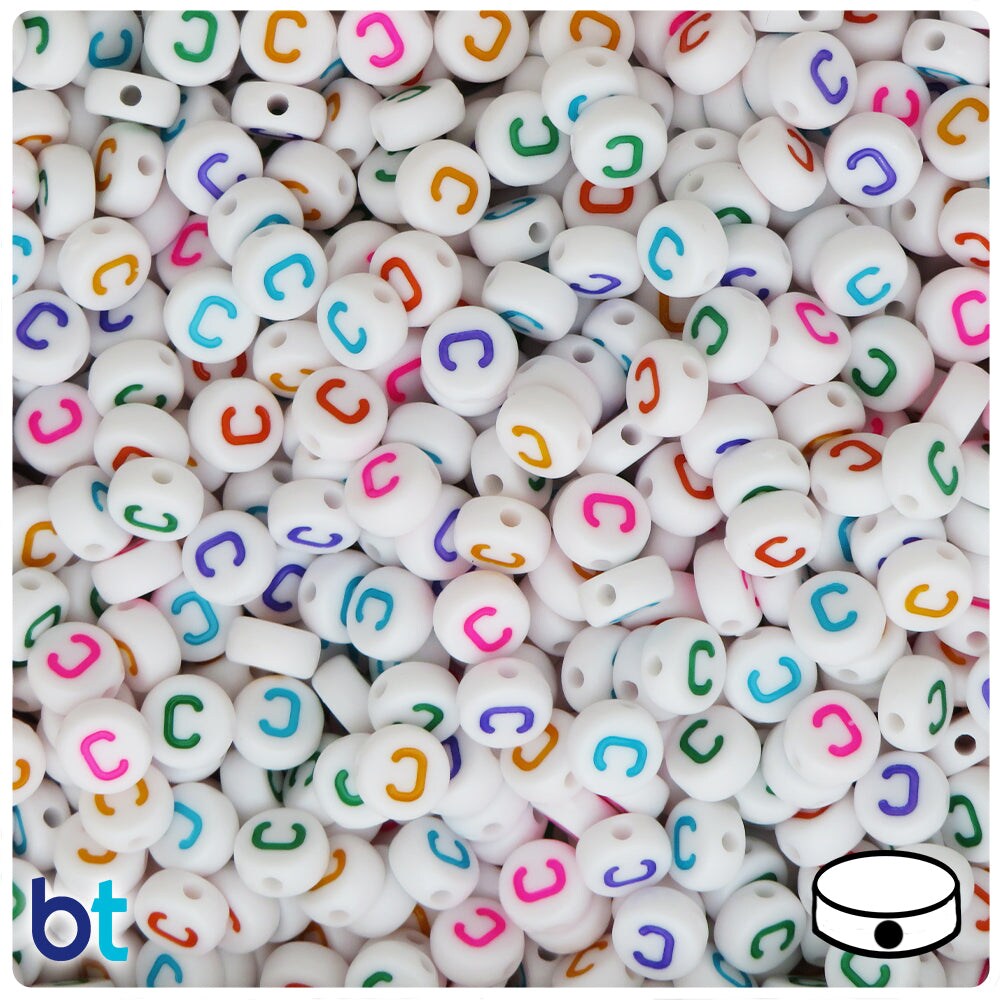 BeadTin White Opaque 7mm Coin Plastic Alpha Beads - Colored Letter C (100pcs)