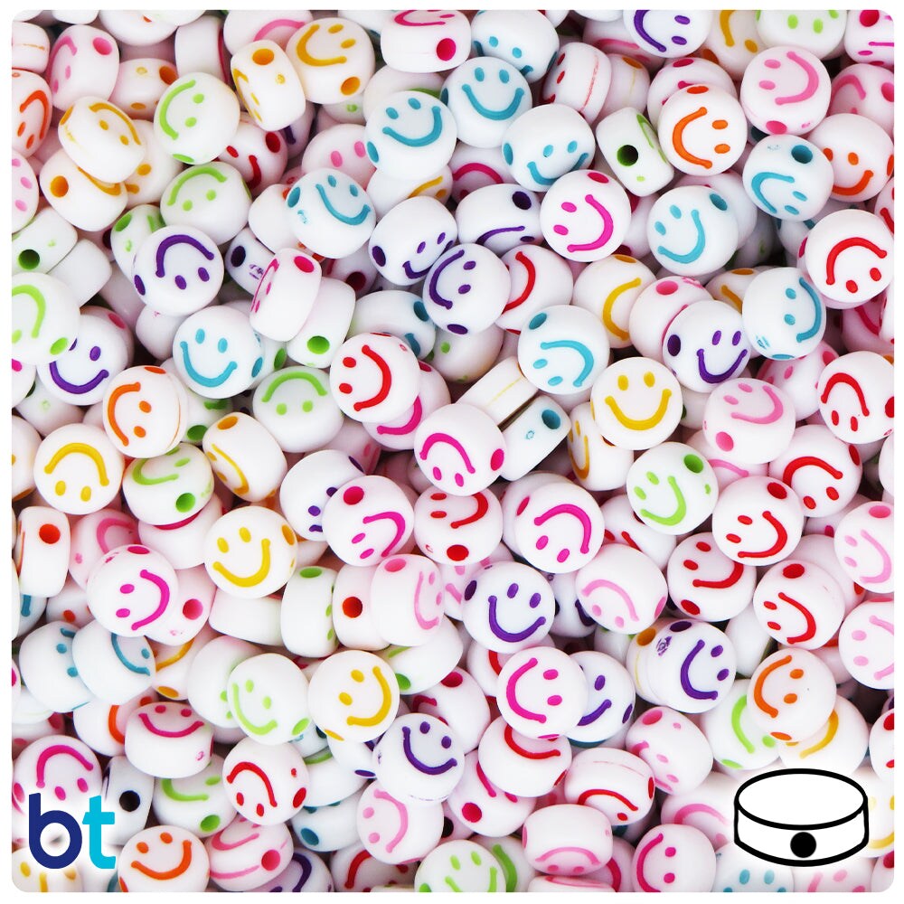 BeadTin White Opaque 7mm Coin Plastic Alpha Beads - Colored Smiles (250pcs)