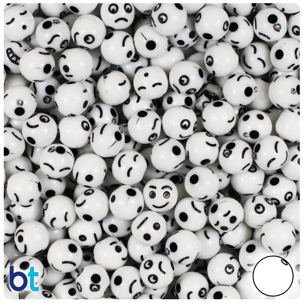 BeadTin White Opaque 8mm Round Plastic Alpha Beads - Black Faces (200pcs)