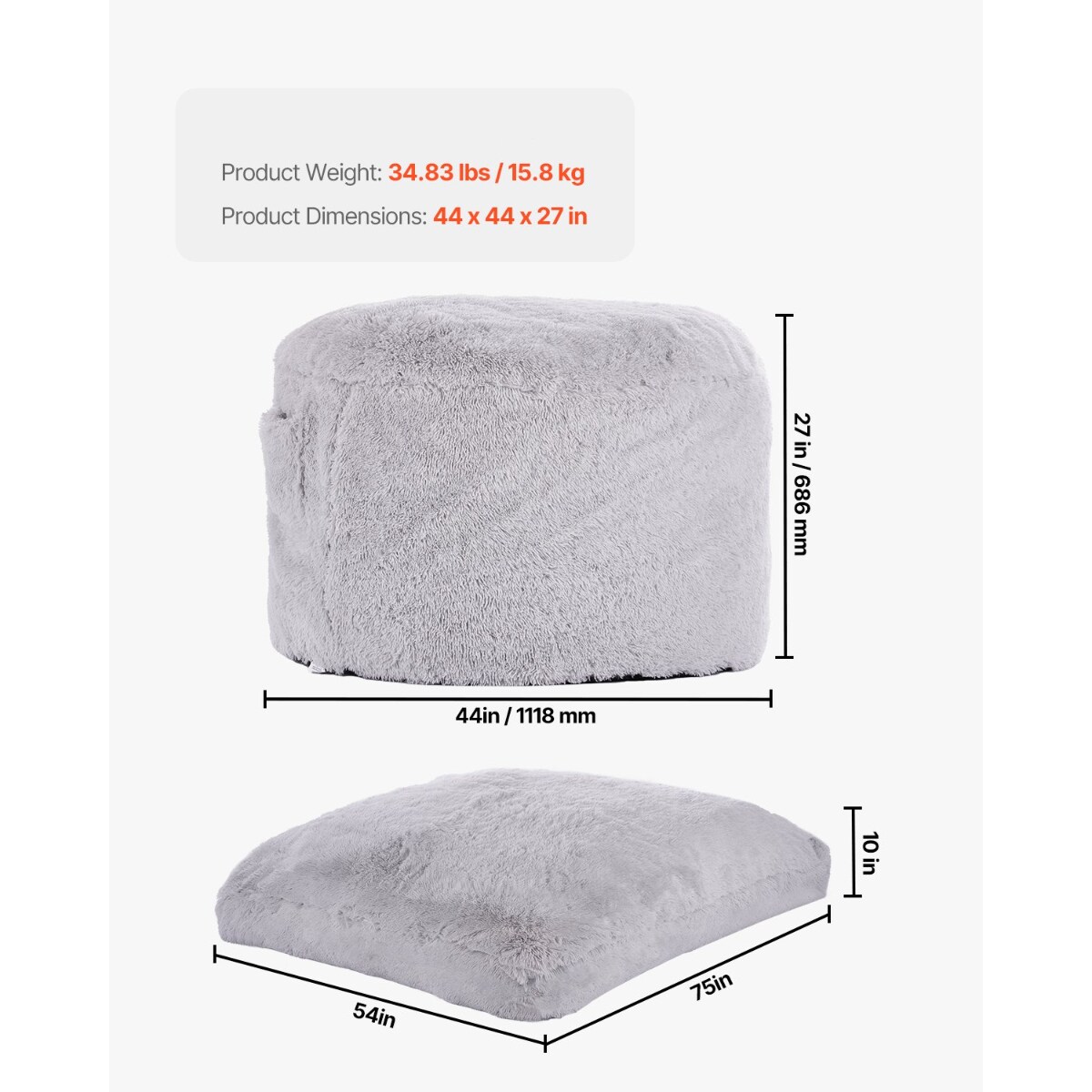 Bean Bag Bed Chair Convertible to Lounge or Mattress with Washable Cover Grey