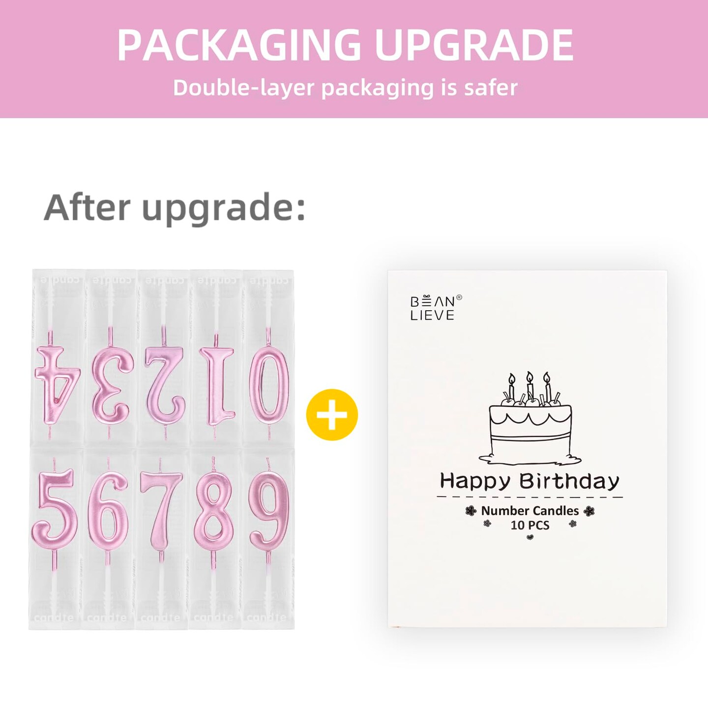 Beanlieve Rose Gold Birthday Candles - Cake Numeral Candles Number 0-9 Glitter Cake Topper Decoration for Birthday,Wedding Anniversary,Party Celebration(10 Pieces)