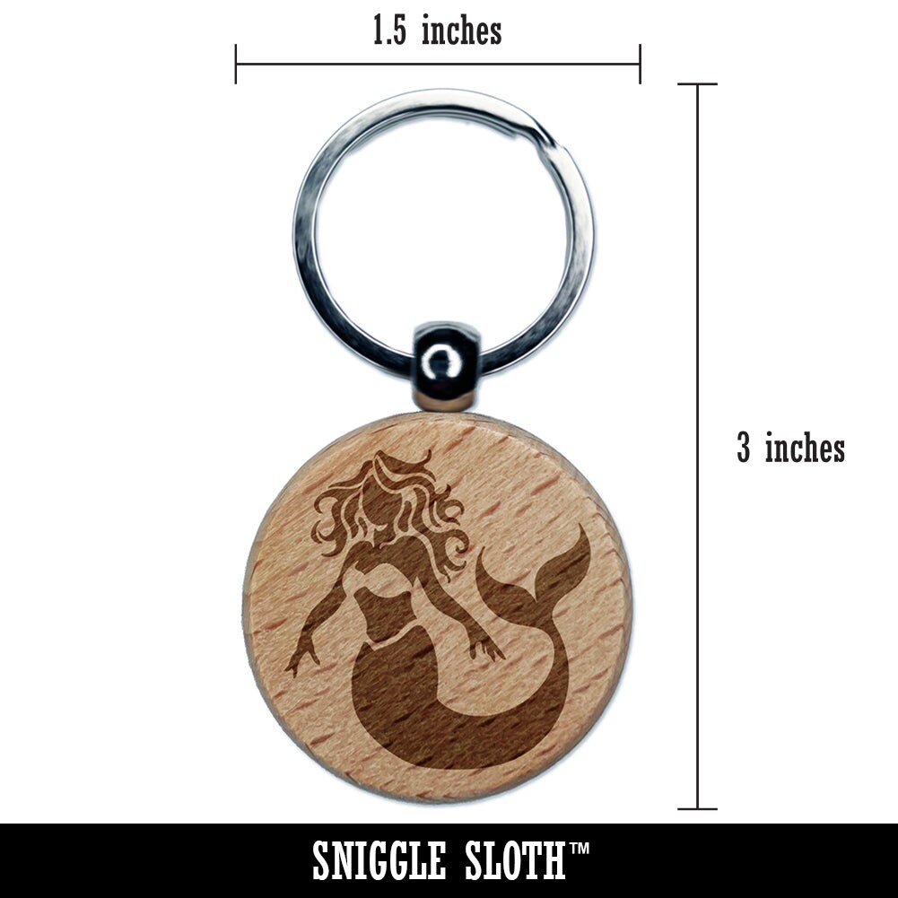 Beautiful Mythological Mermaid Engraved Wood Round Keychain Tag Charm