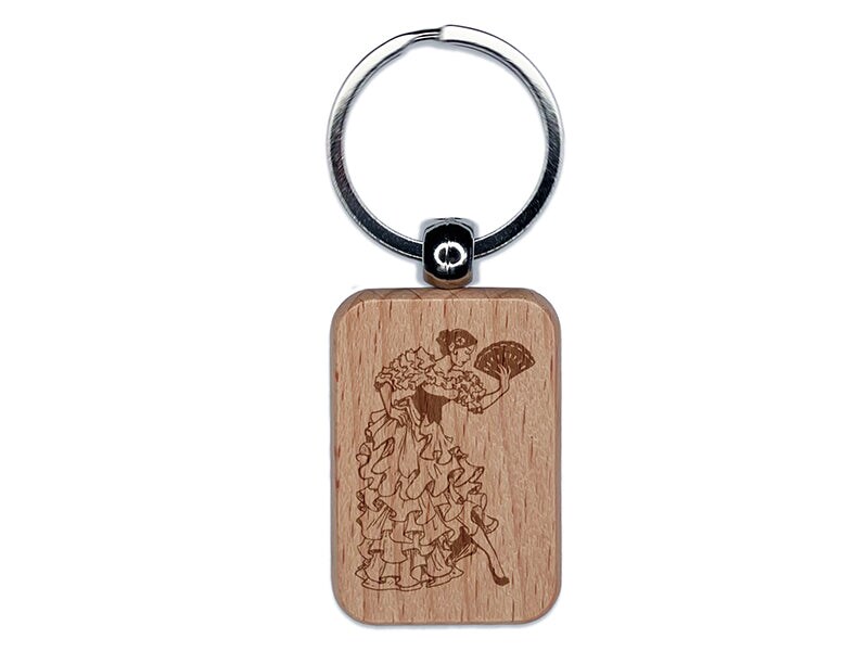 Beautiful Spanish Flamenco Dancer Woman in Dress Engraved Wood Rectangle Keychain Tag Charm