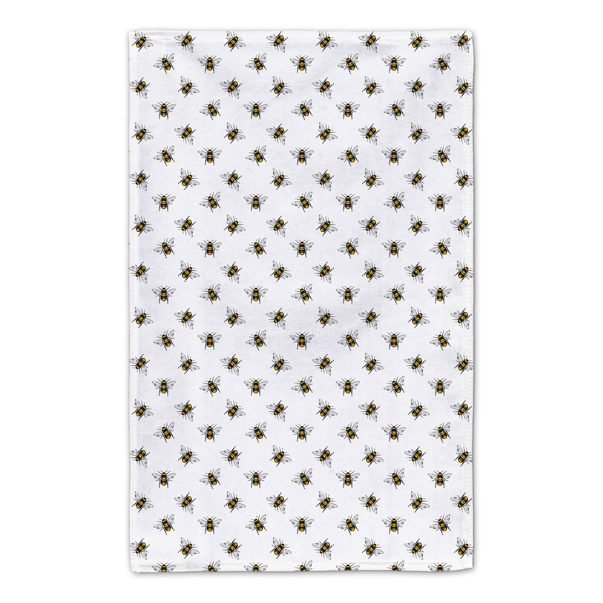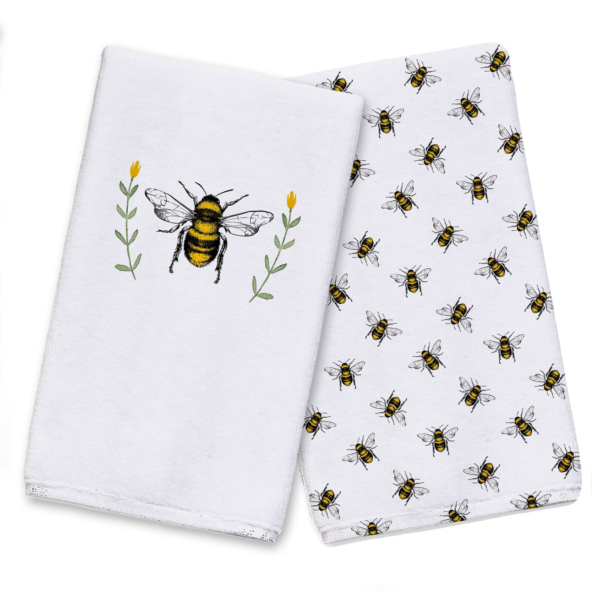 Bee With Watercolor Flowers 16" x 25" Tea Towel Set of 2