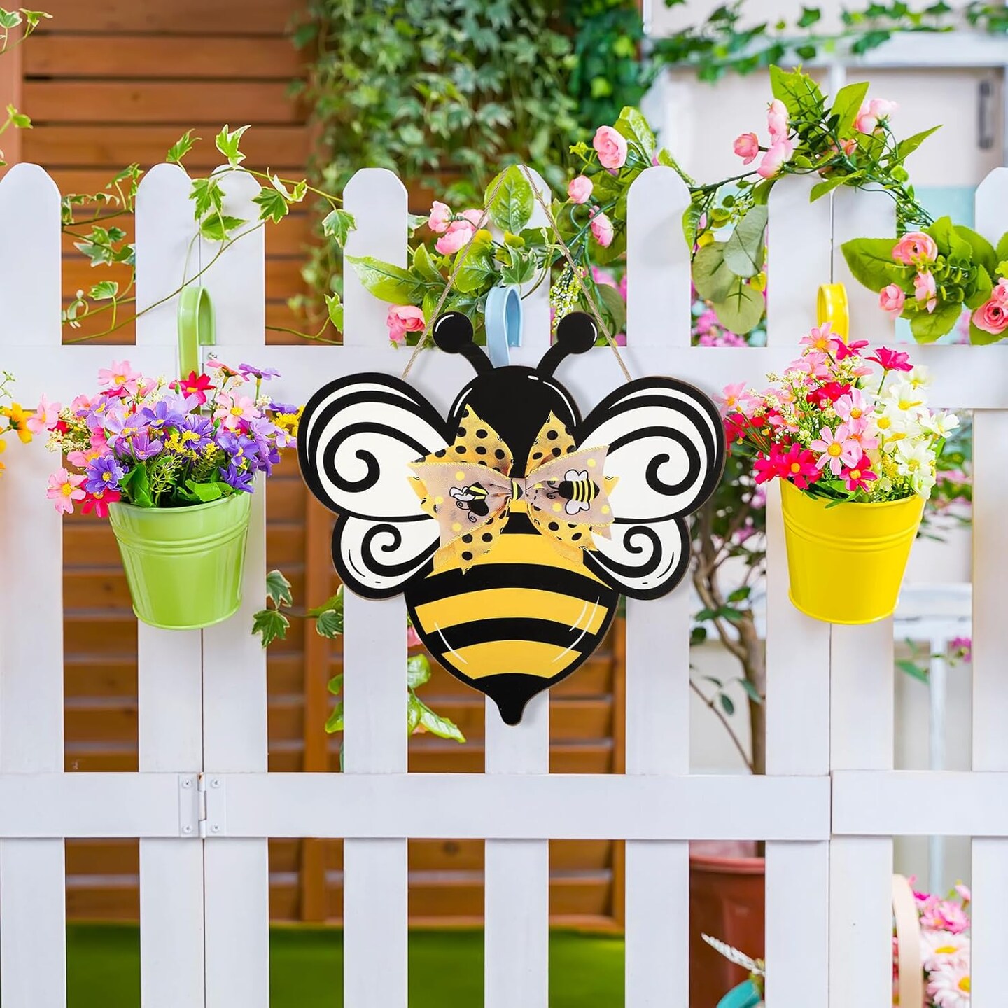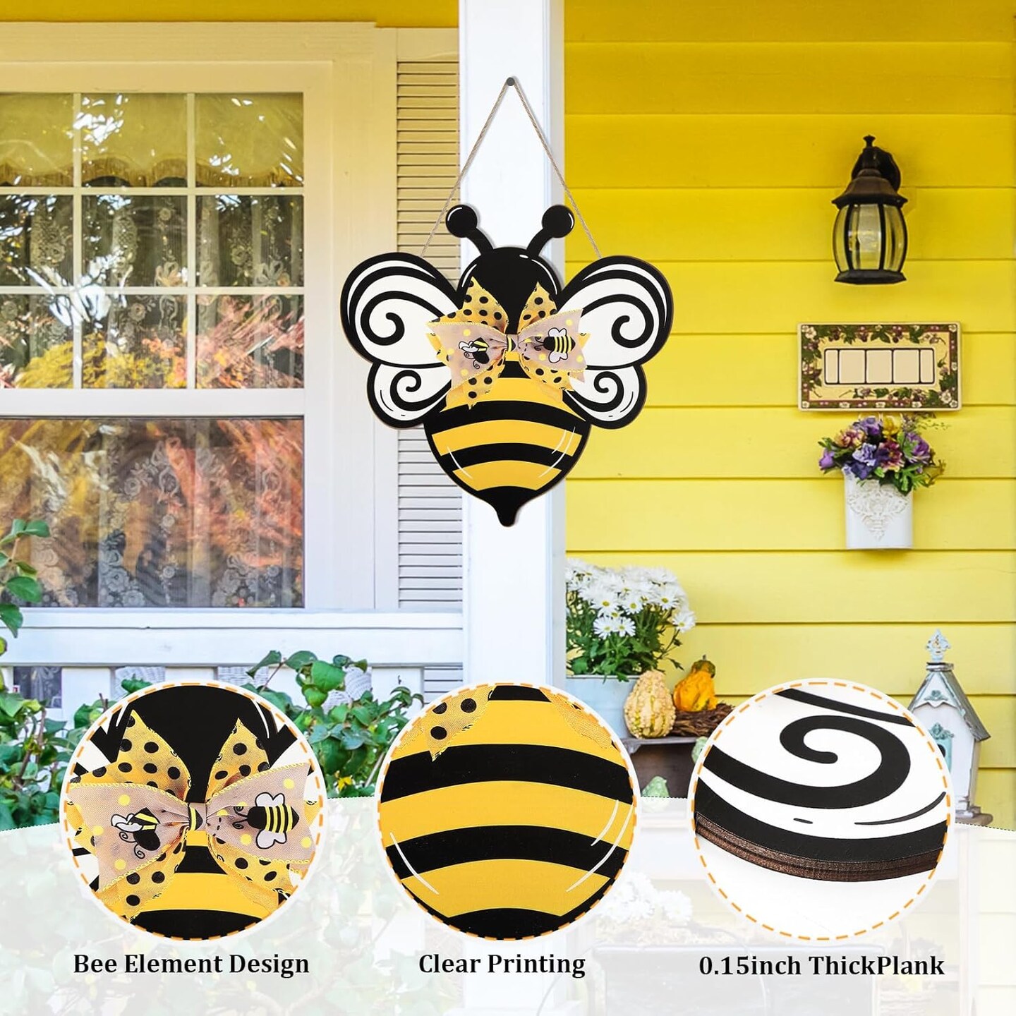Bee Wooden Wreath Sign with Bow – Spring Front Door & Farmhouse Decor
