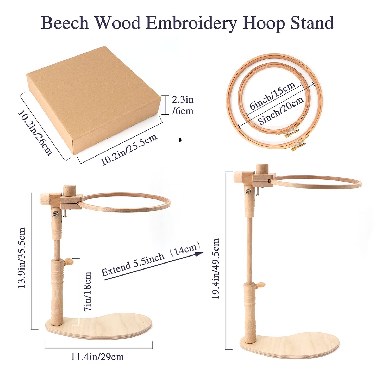 Beech Wood Adjustable Rotated Embroidery Hoop Stand with 2 Pcs 6'' 8'' Embroidery Hoops, Wooden Embroidery Stand, Embroidery Hoop Holder for Cross Stitch and Embroidery Project (A)