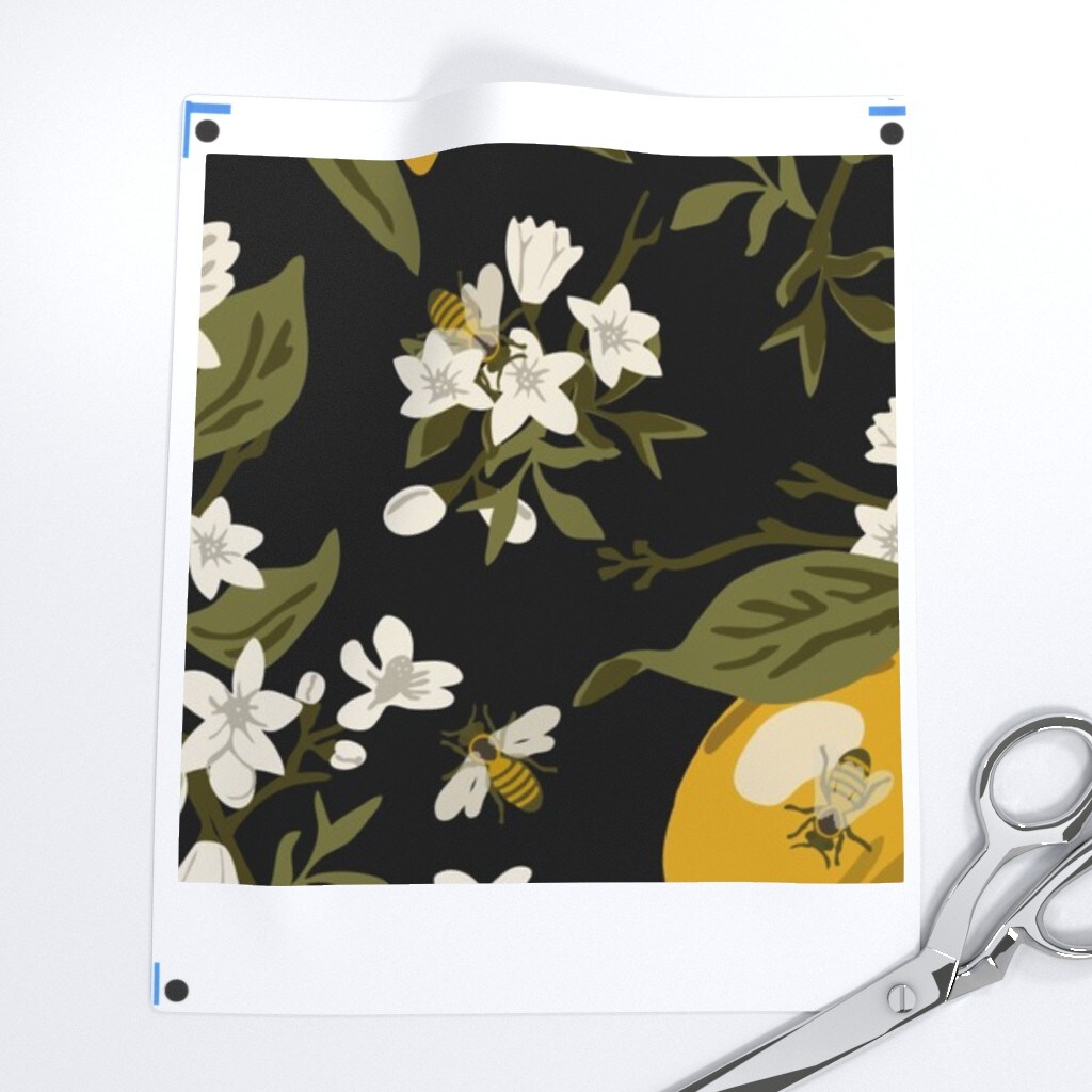 Bees Lemons Black Large Modern Citrus Traditional Custom Removable Wallpaper by Spoonflower Peel & Stick Wallpaper 2FT Wide
