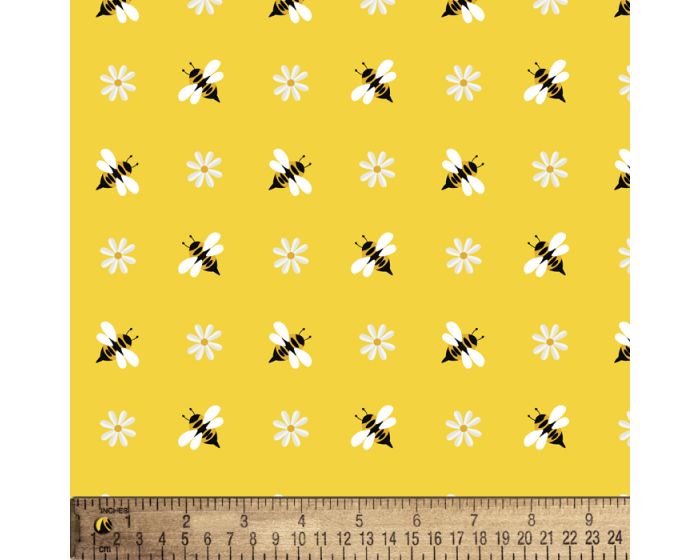 Bees n Flowers Yellow Cotton Fabric | By the Yard | Sewing and Crafting | 44 inches wide