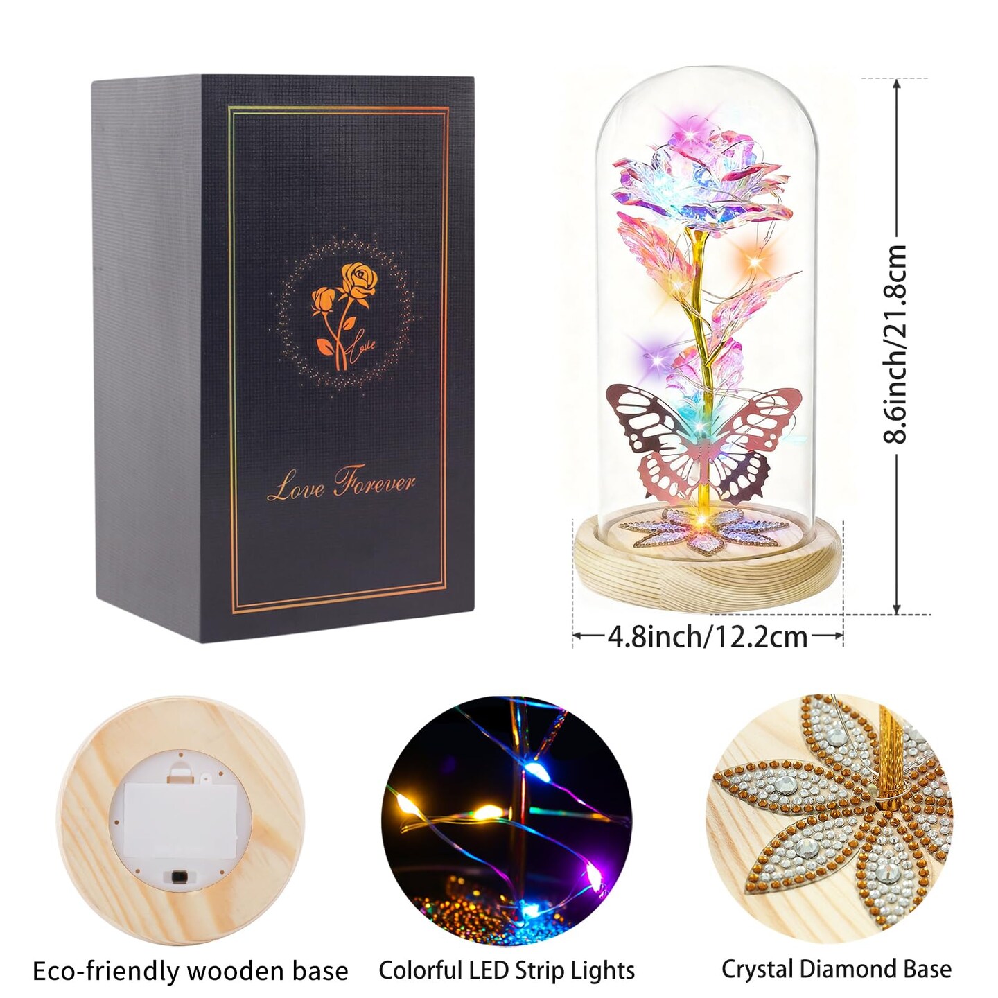 Beferr Mothers Day Rose Gifts for Mom Galaxy Glass Roses Preserved Forever Flowers for Delivery Light Up Rose in Glass Dome Anniversary Birthday Gifts for Women Grandma Wife Her Daughter Girlfriend