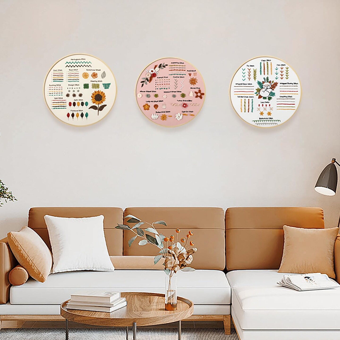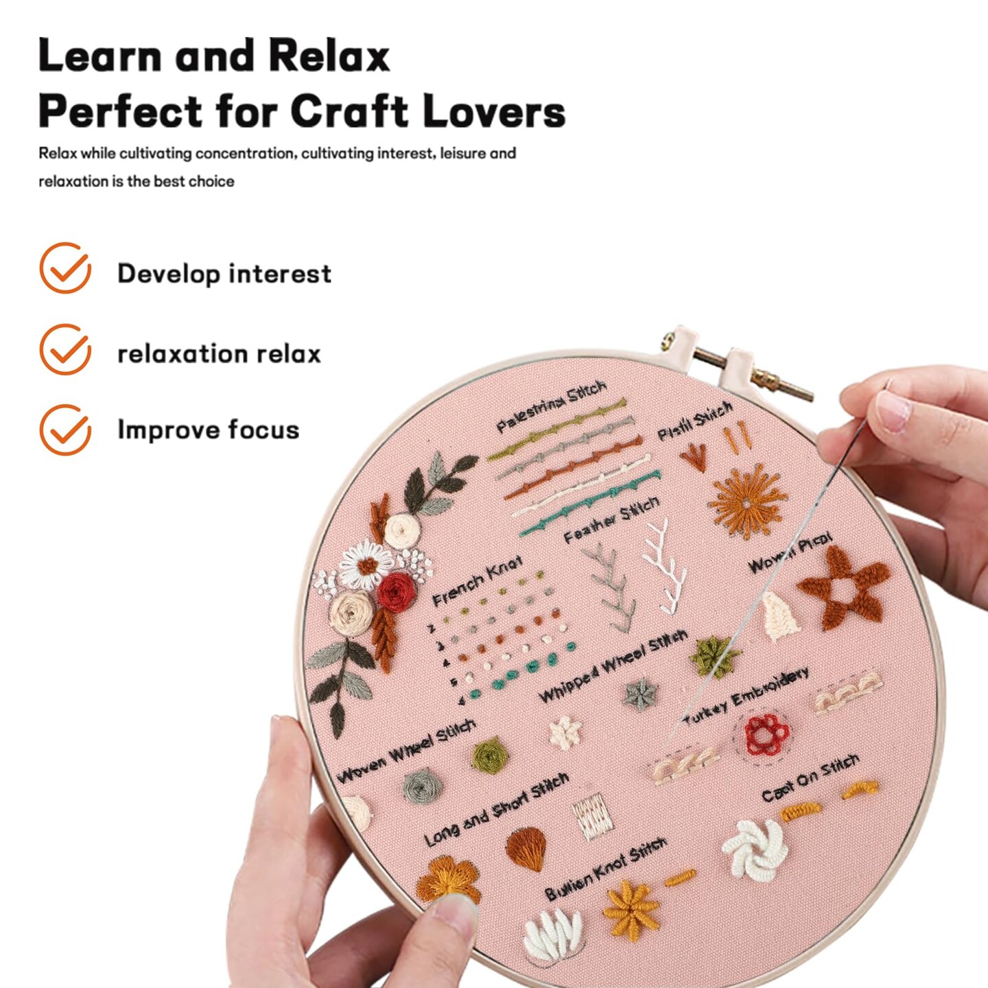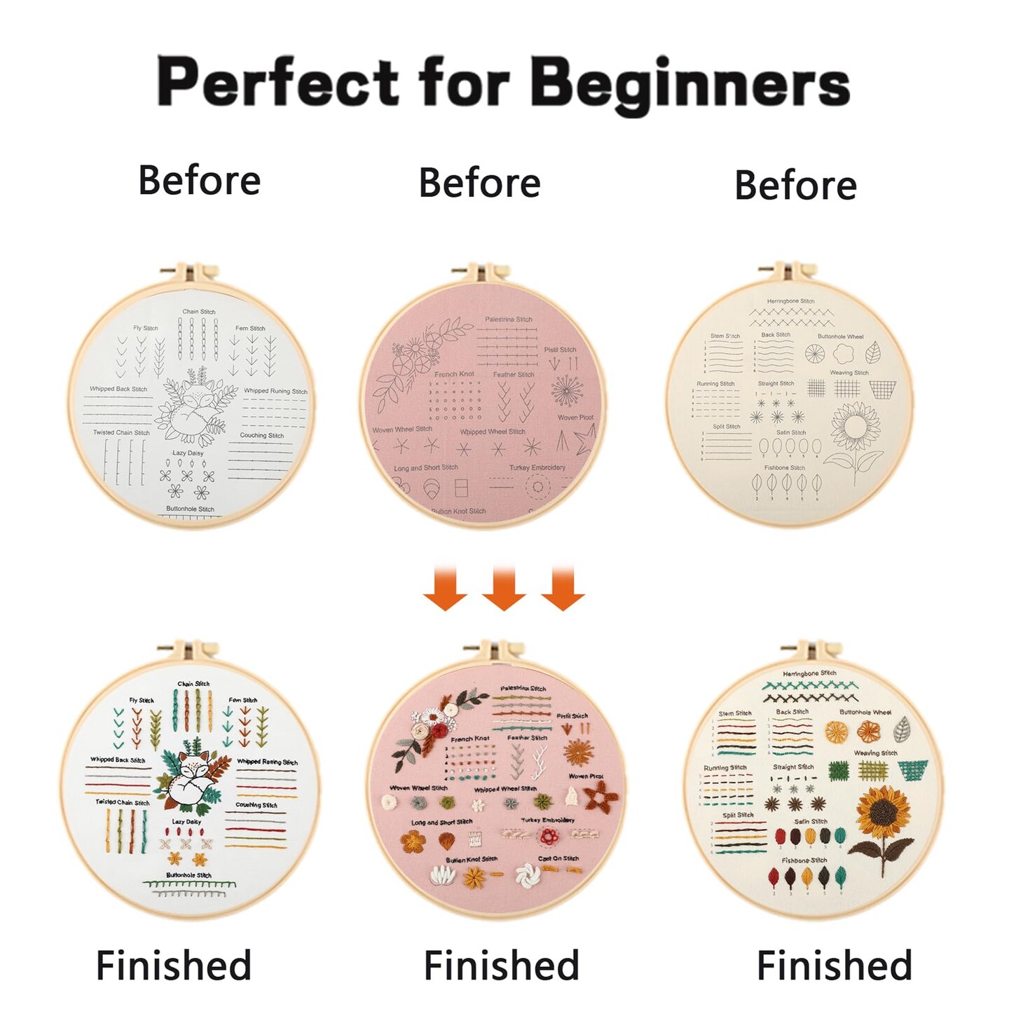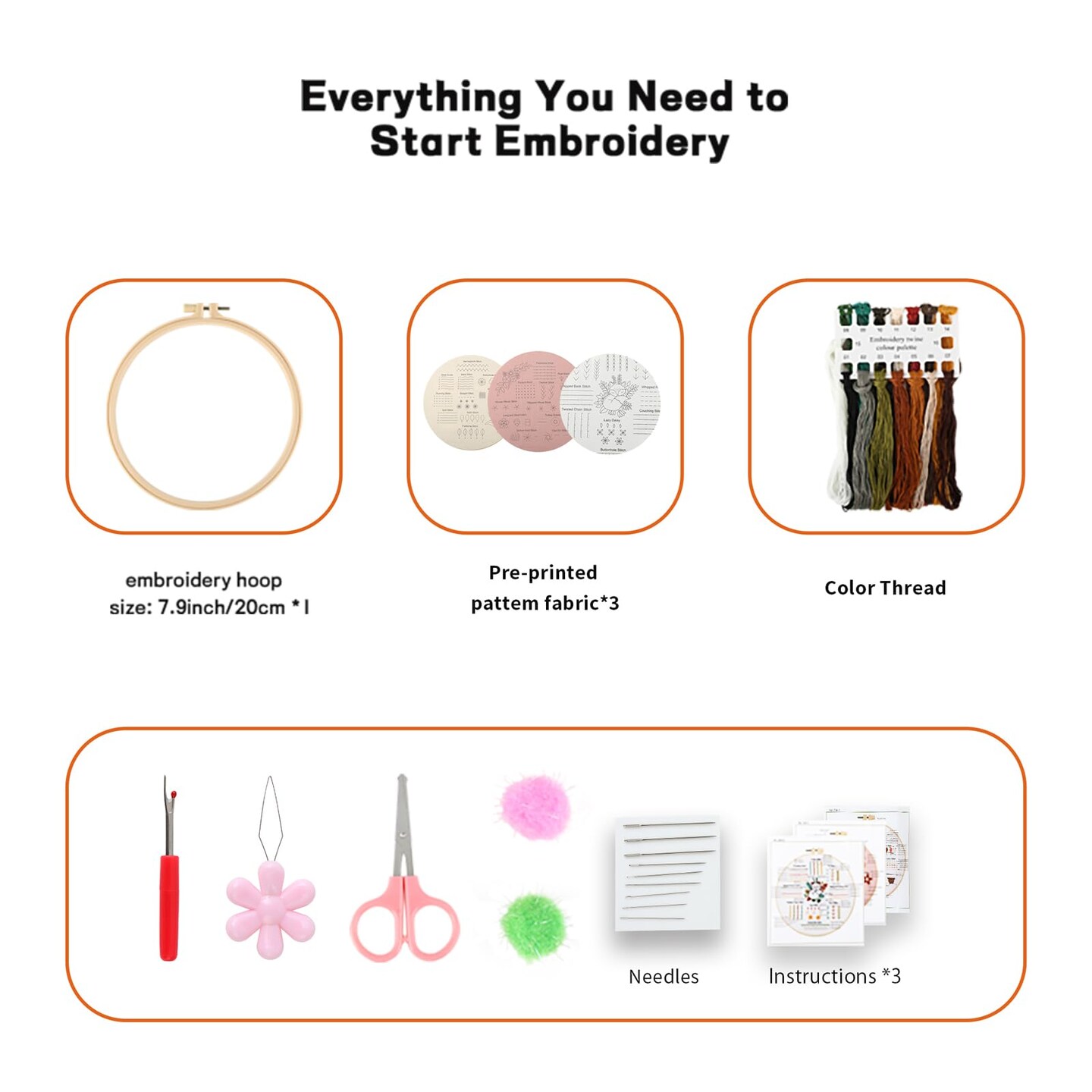 Beginner Embroidery Kit for Adults, 3 Pack Cross Stitch Kits with Pre-Printed Patterns, Threads, Needles, Learn Stitches with 7.8" Hoop, Video Tutorial, DIY Needlework Craft Gift for Women