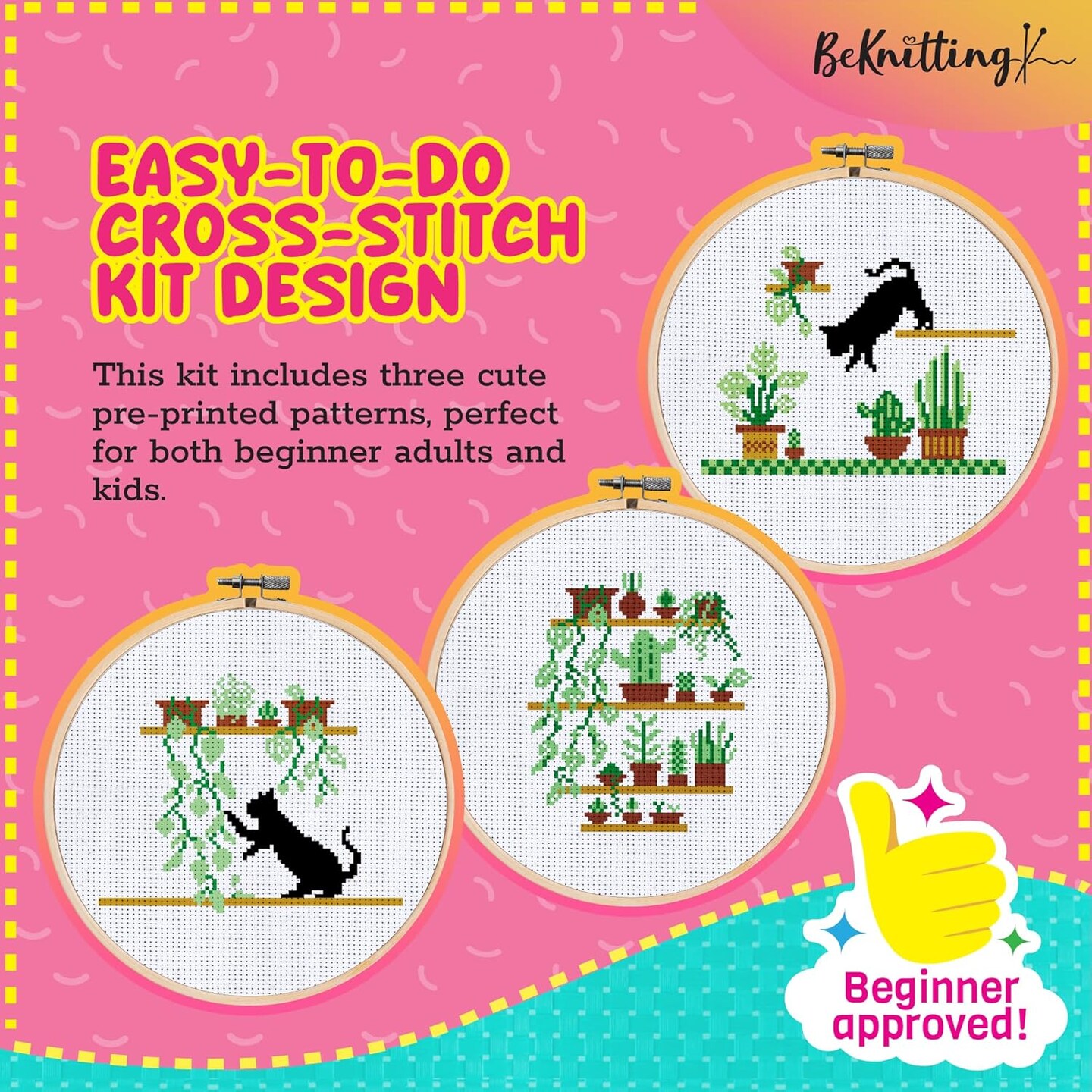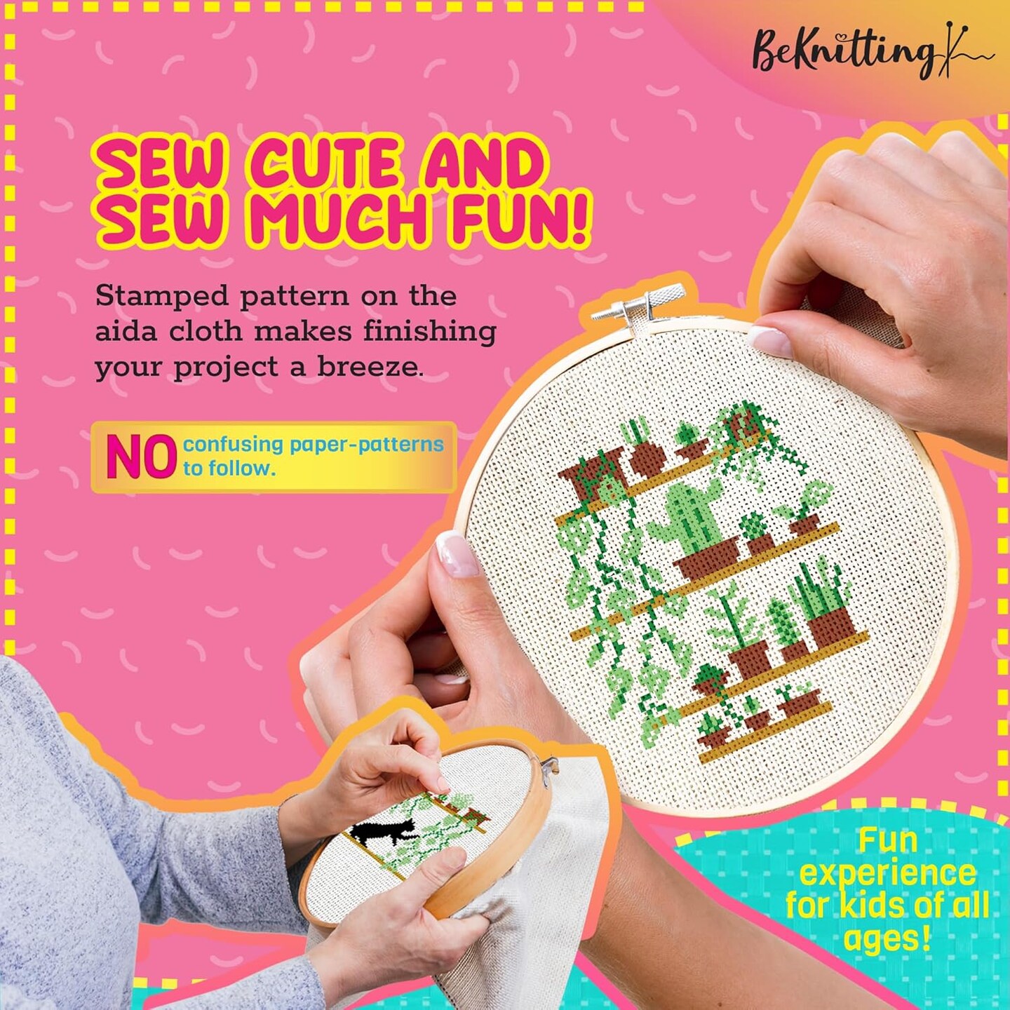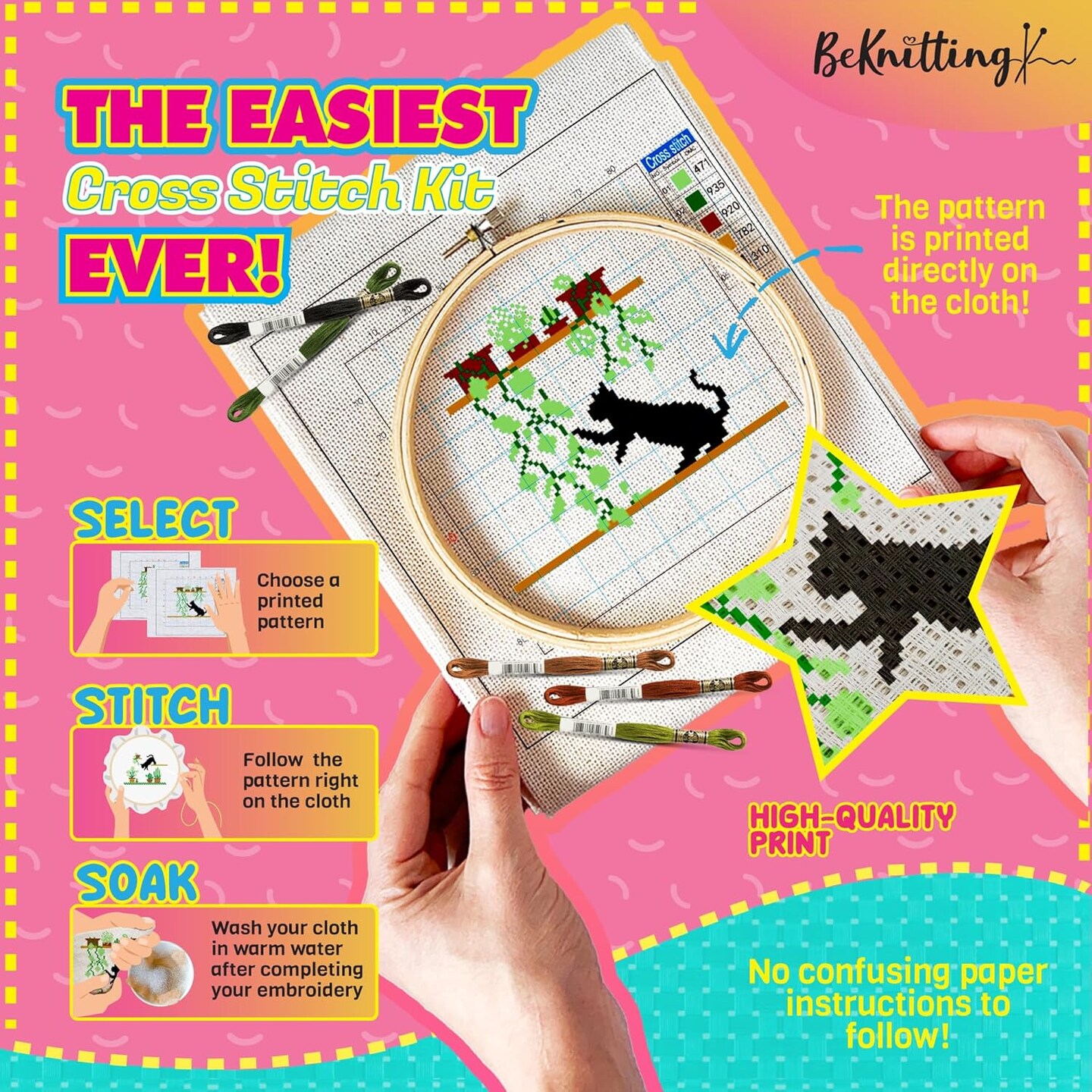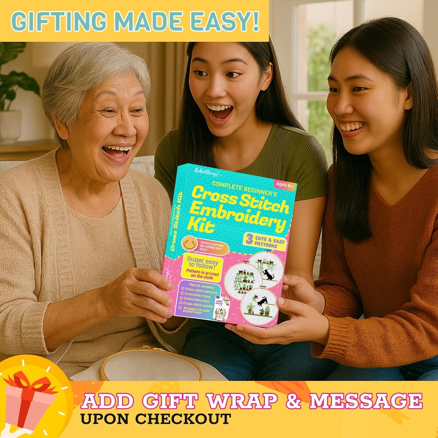 Beginner Stamped Cross Stitch Kit for Adults & Kids – Holiday Gift Set with Embroidery Hoop, Floss & Needles