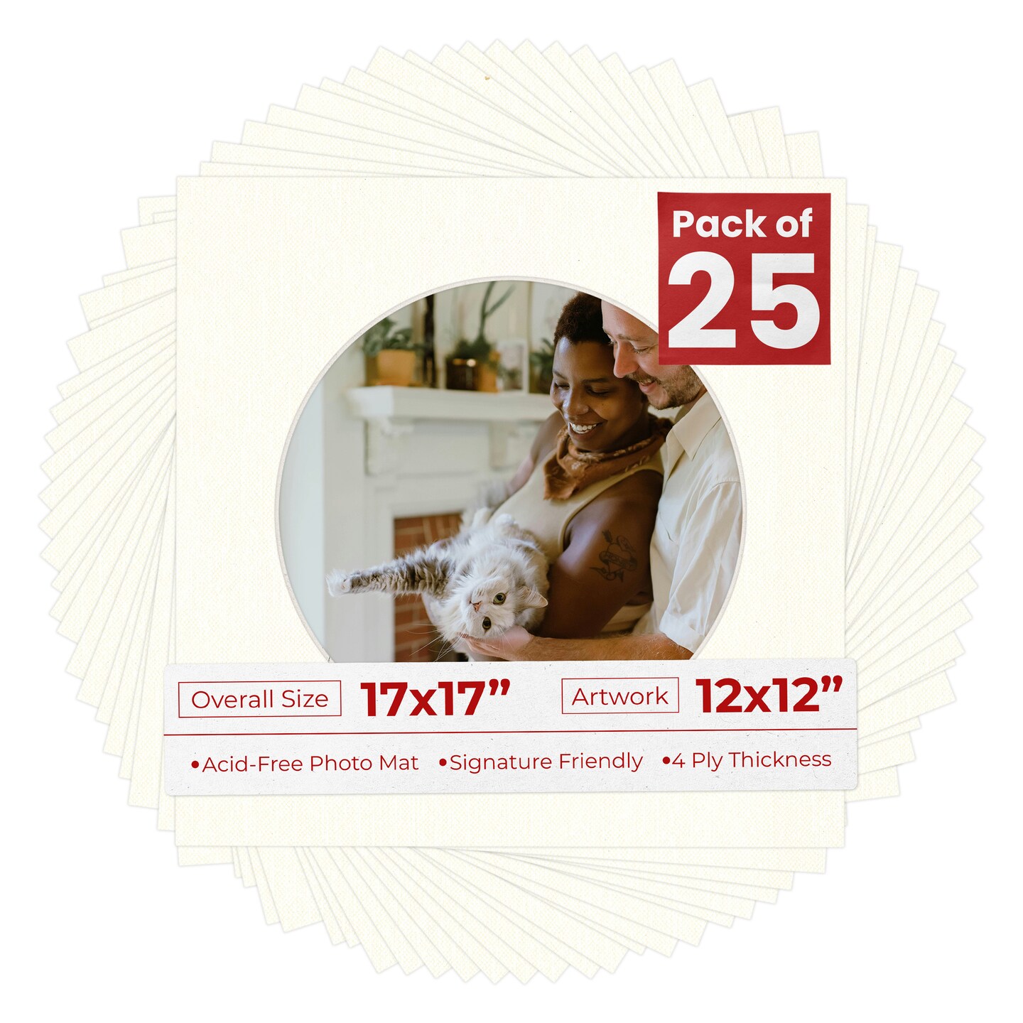 Beige Canvas Mat Board for 17x17 Frames - Circle Opening for 12x12 Photos