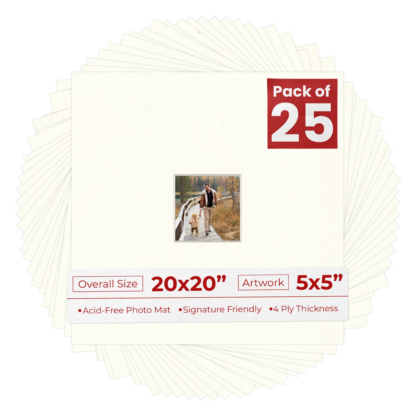 Beige Canvas Mat Board for 20x20 Frames - Fits 5x5 Photos