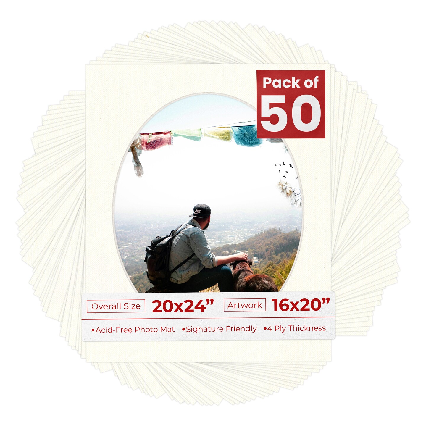 Beige Canvas Mat Board for 20x24 Frames - Oval Opening for 16x20 Photos