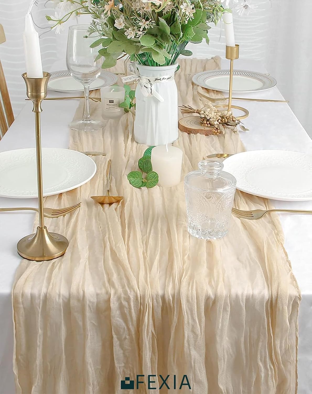 Beige Cheesecloth Table Runner 35x120 Inches Ivory Gauze Rustic Boho Spring Easter(Beige)120"L x 35"W