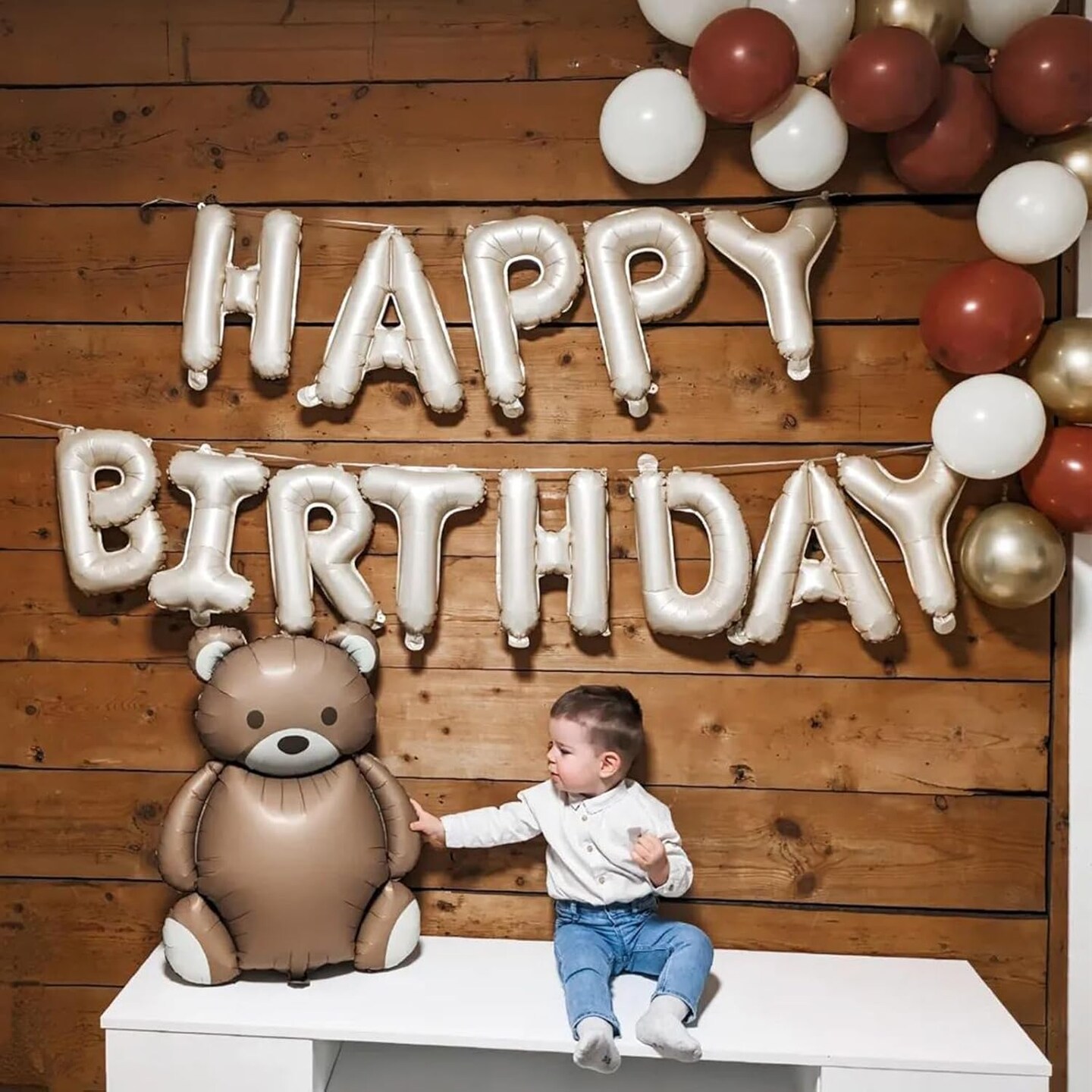 Beige Happy Birthday Balloon Banner – 16-Inch Cream White Foil Letters for Boys, Girls, Men & Women Party Decorations (Happy Birthday)