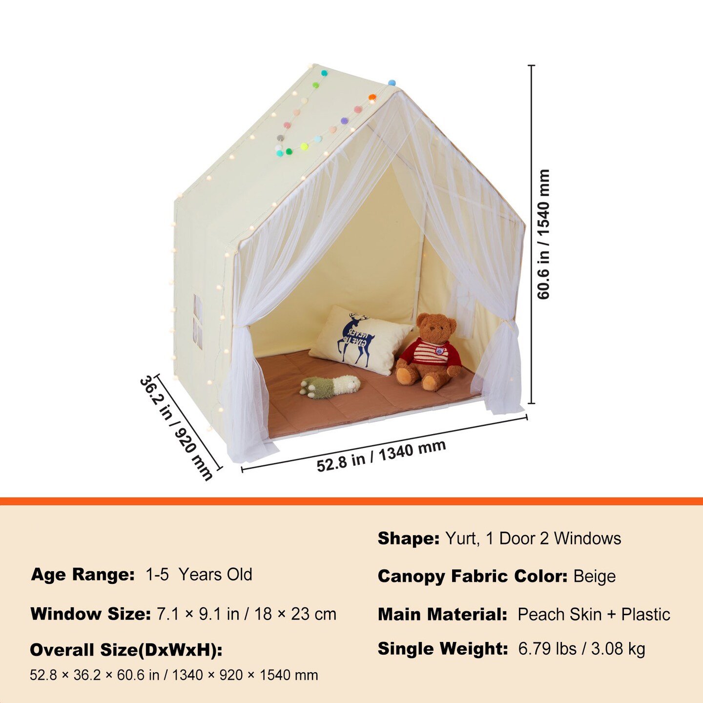 Beige Kids Yurt Tent, Indoor Outdoor Play Tent with Windows and Lamp