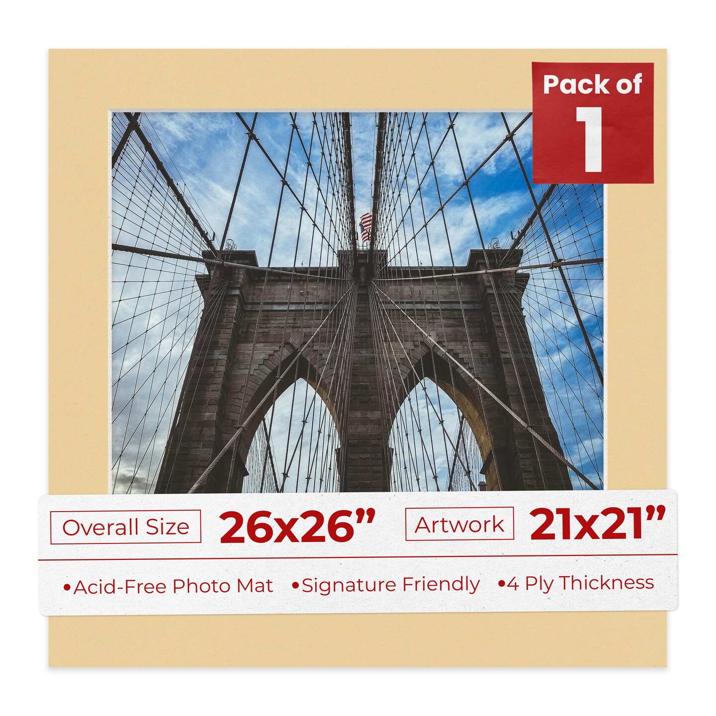Beige Mat Board for 26x26 Frames - Fits 21x21 Photos