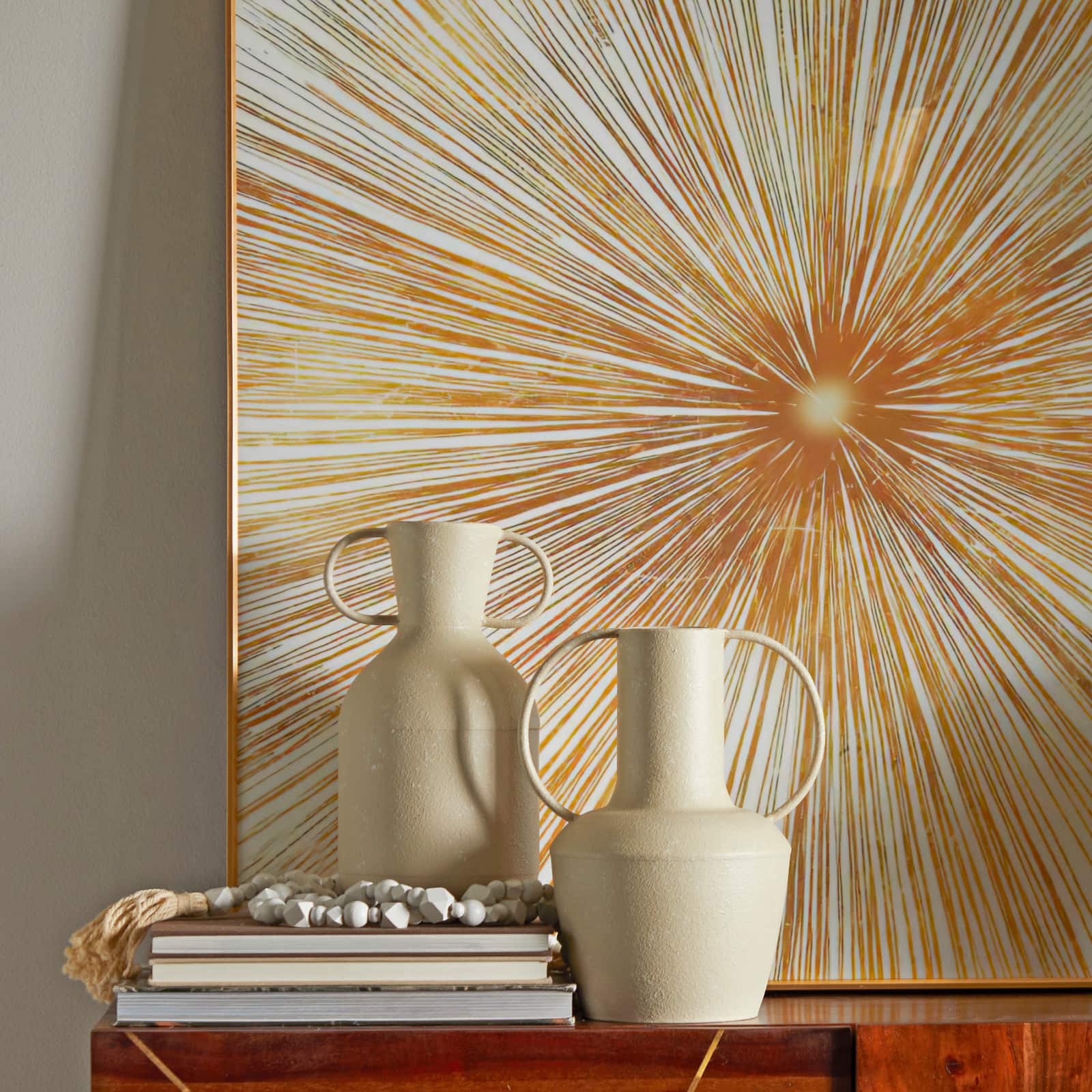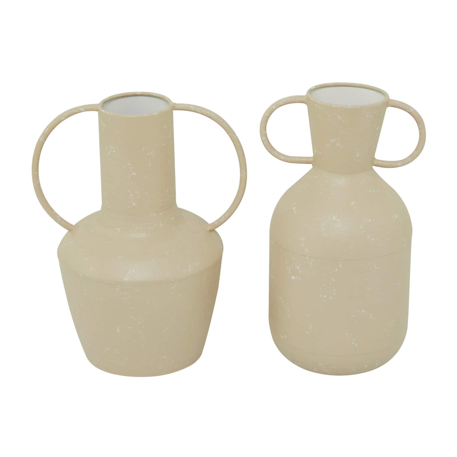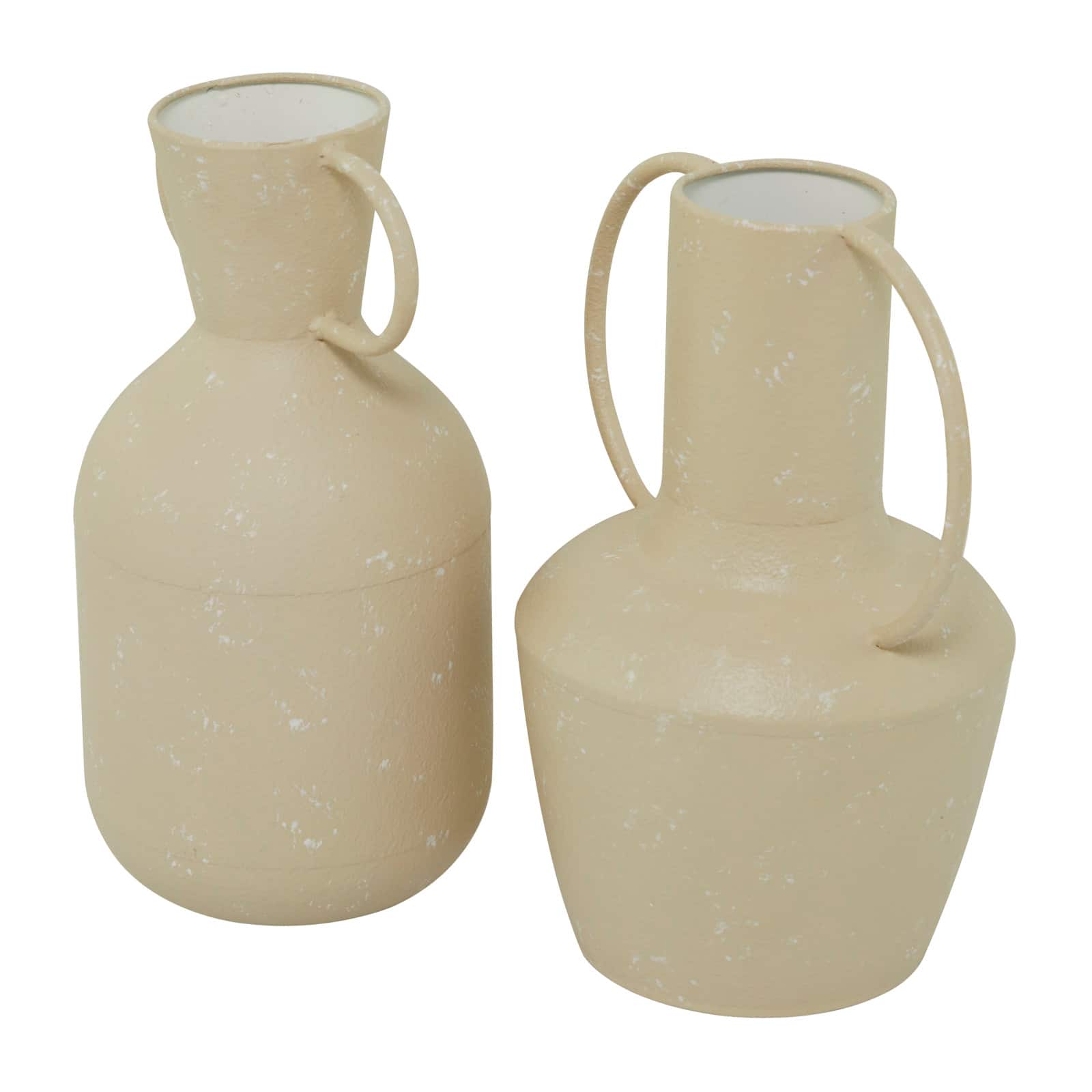 Beige Metal Vase with Handles Set of 2 7", 9"