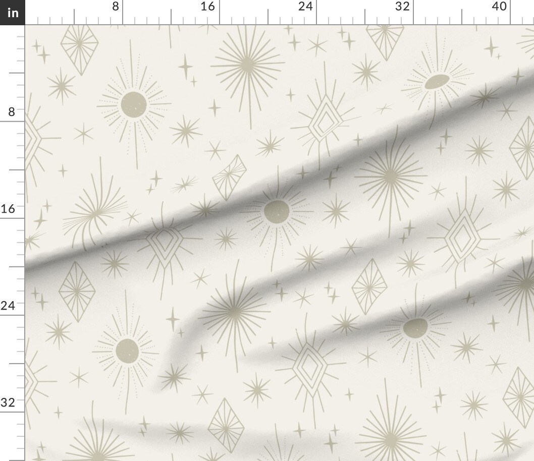 Beige Star Space Retro Neutral 60'S Whimsical Whimsy Magic Celestial Magical Boho Custom Printed Fabric by Spoonflower Various Fabrics by the Yard or Fat Quarter