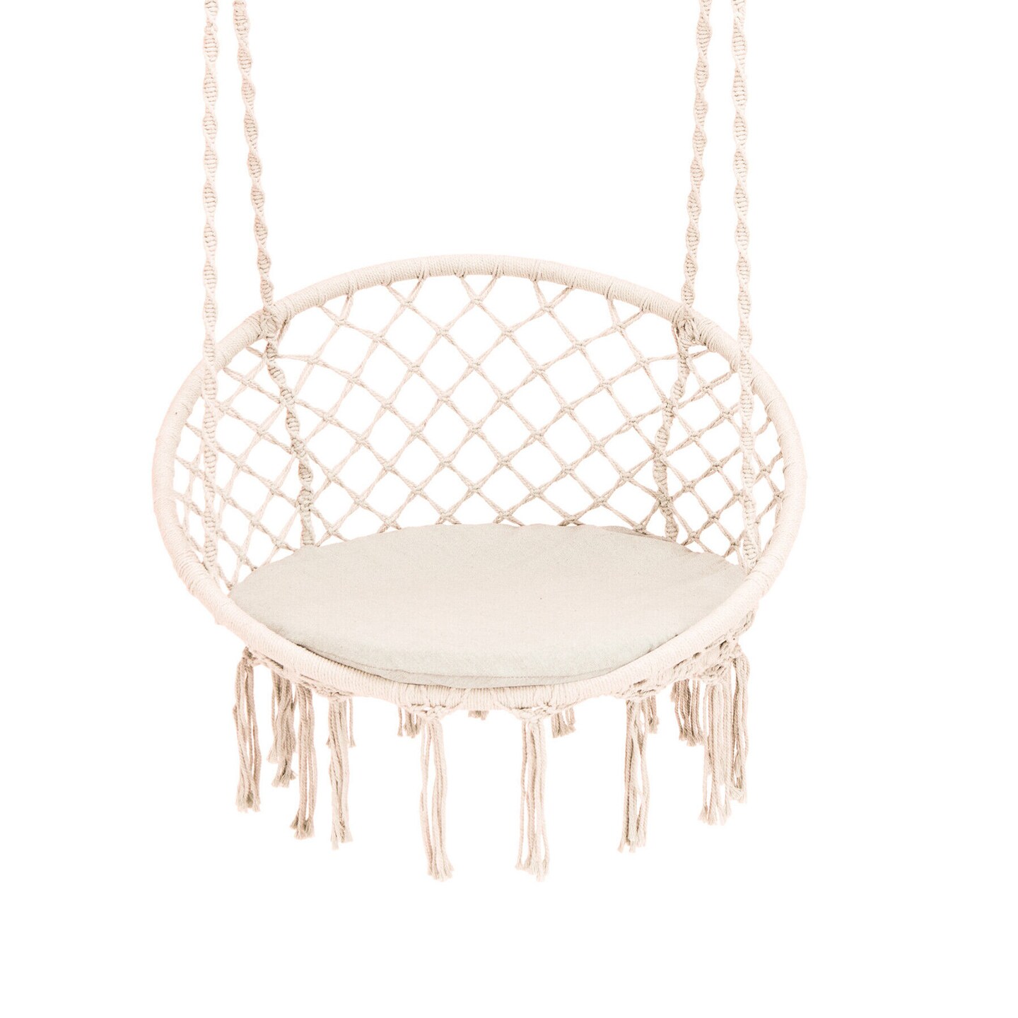 Beige Steel Frame Macrame Hammock Chair with Soft Padded Cushion