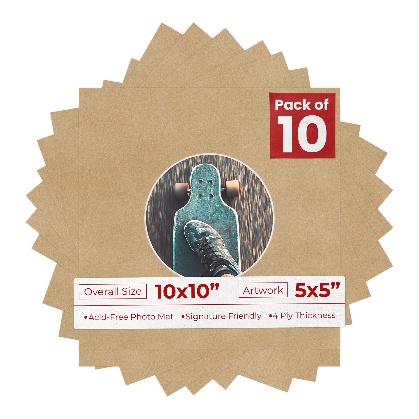 Beige Suede Mat Board for 10x10 Frames - Circle Opening for 5x5 Photos
