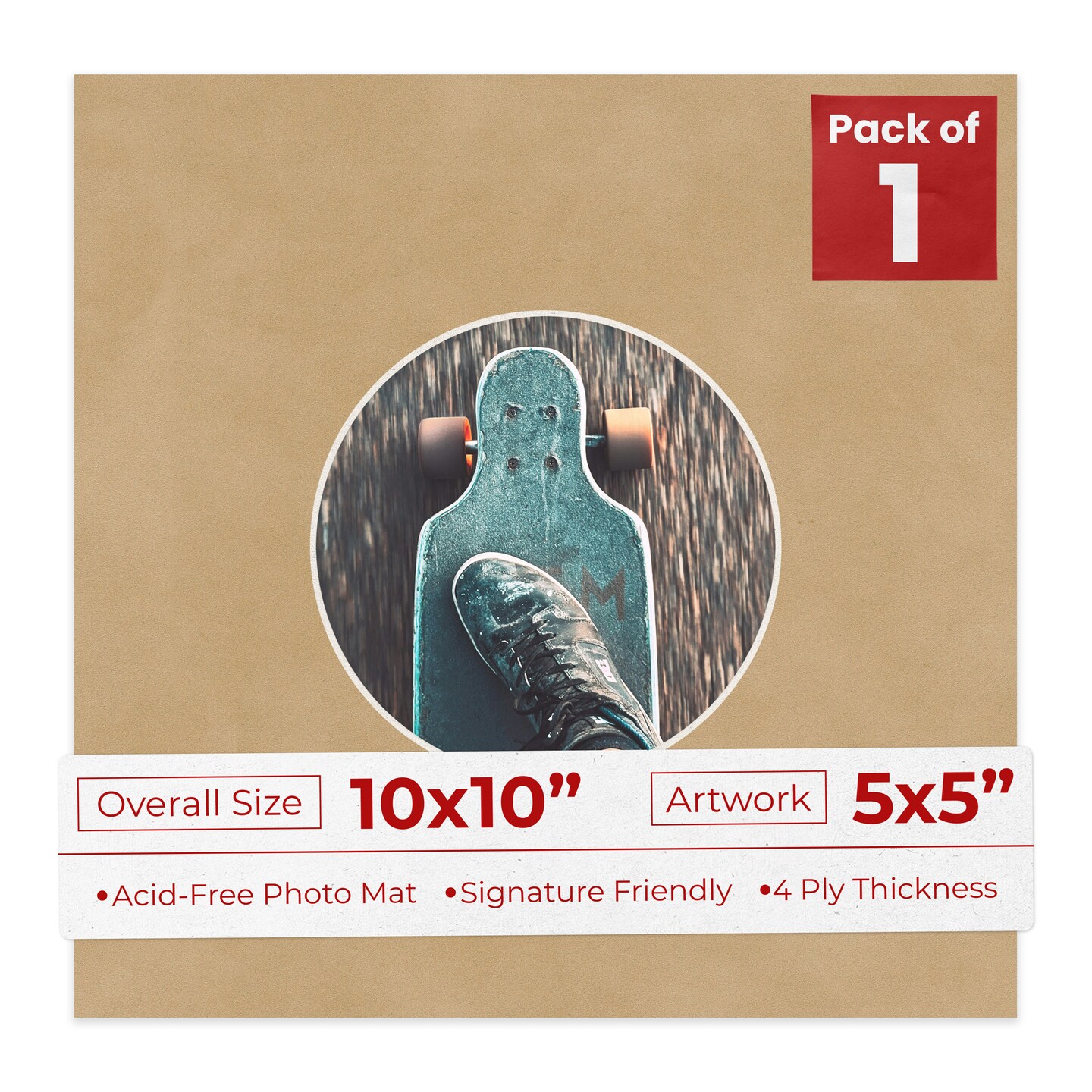 Beige Suede Mat Board for 10x10 Frames - Circle Opening for 5x5 Photos