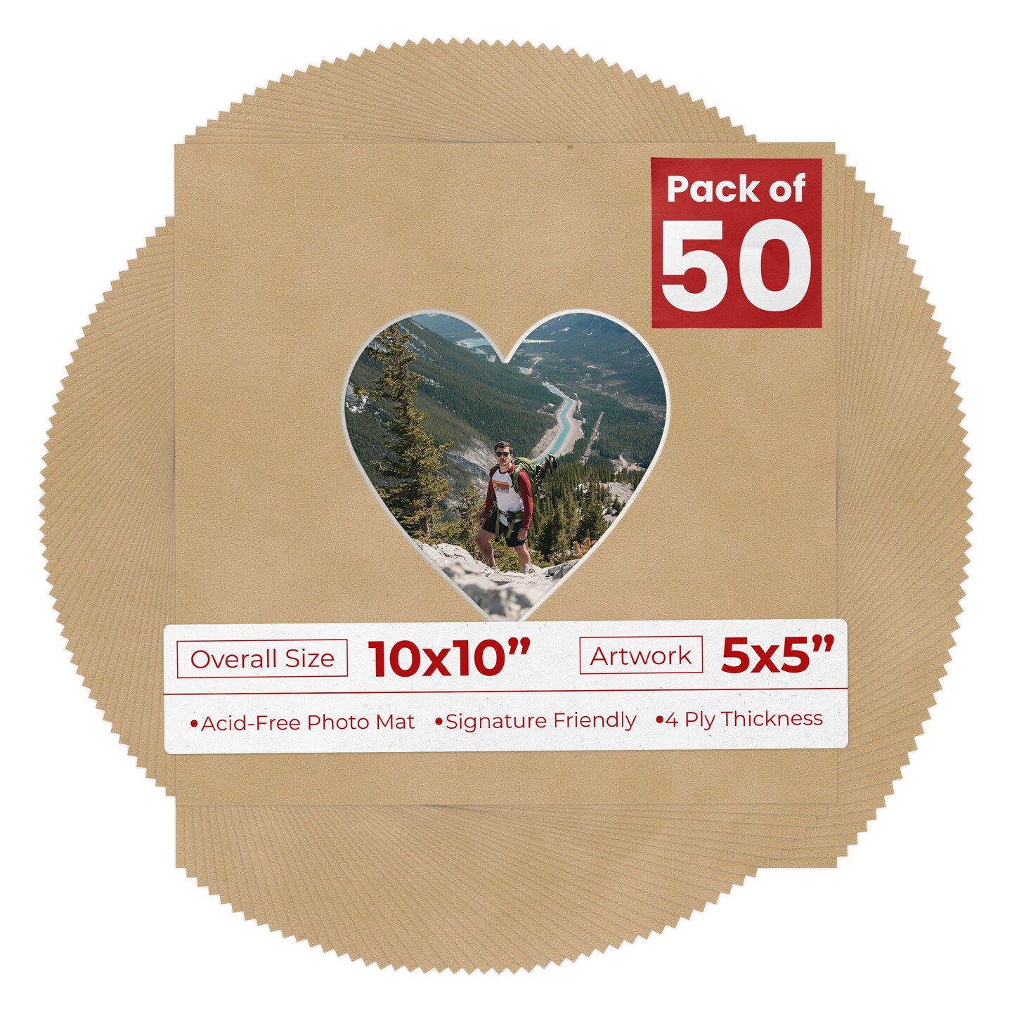 Beige Suede Mat Board for 10x10 Frames - Heart Opening for 5x5 Photos