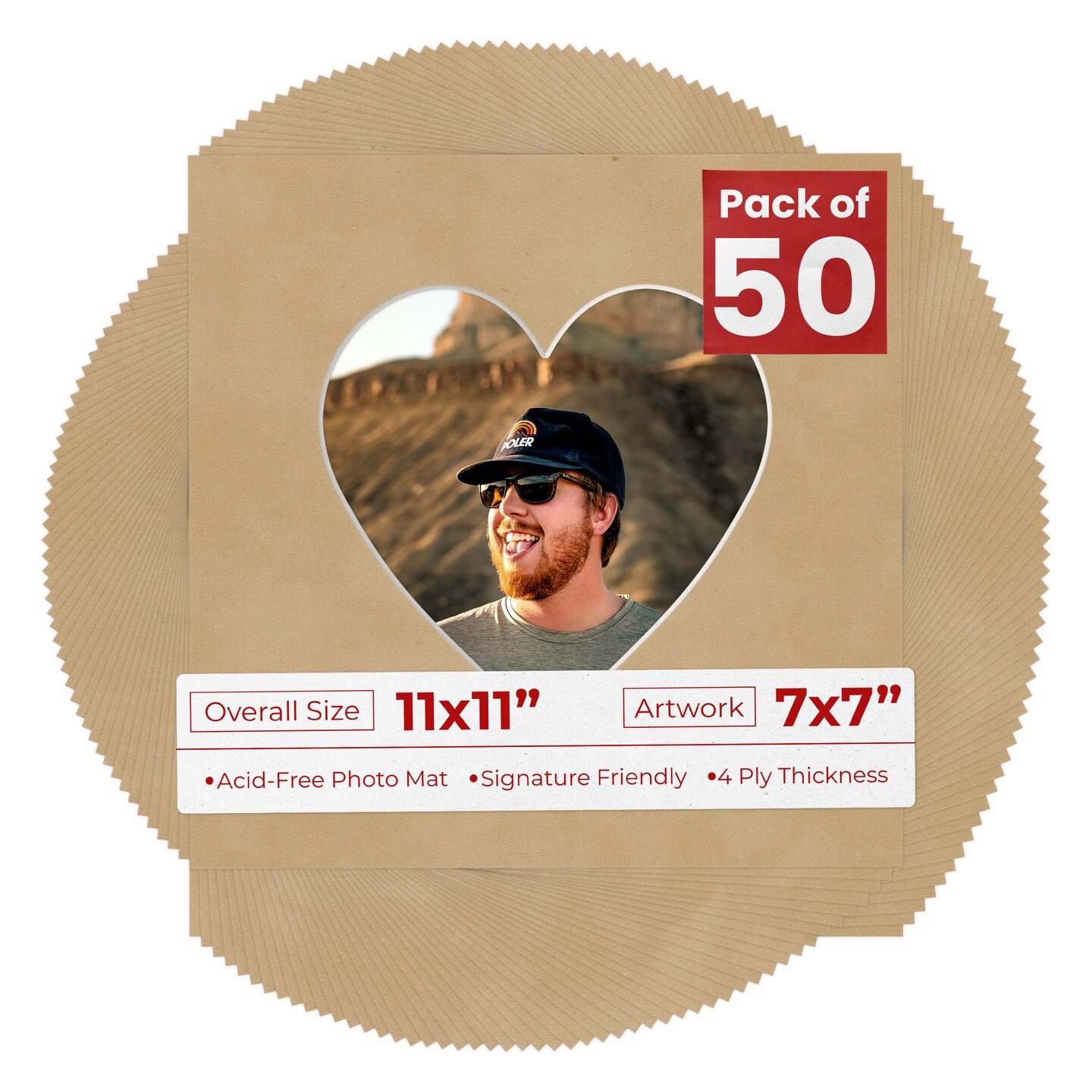Beige Suede Mat Board for 11x11 Frames - Heart Opening for 7x7 Photos