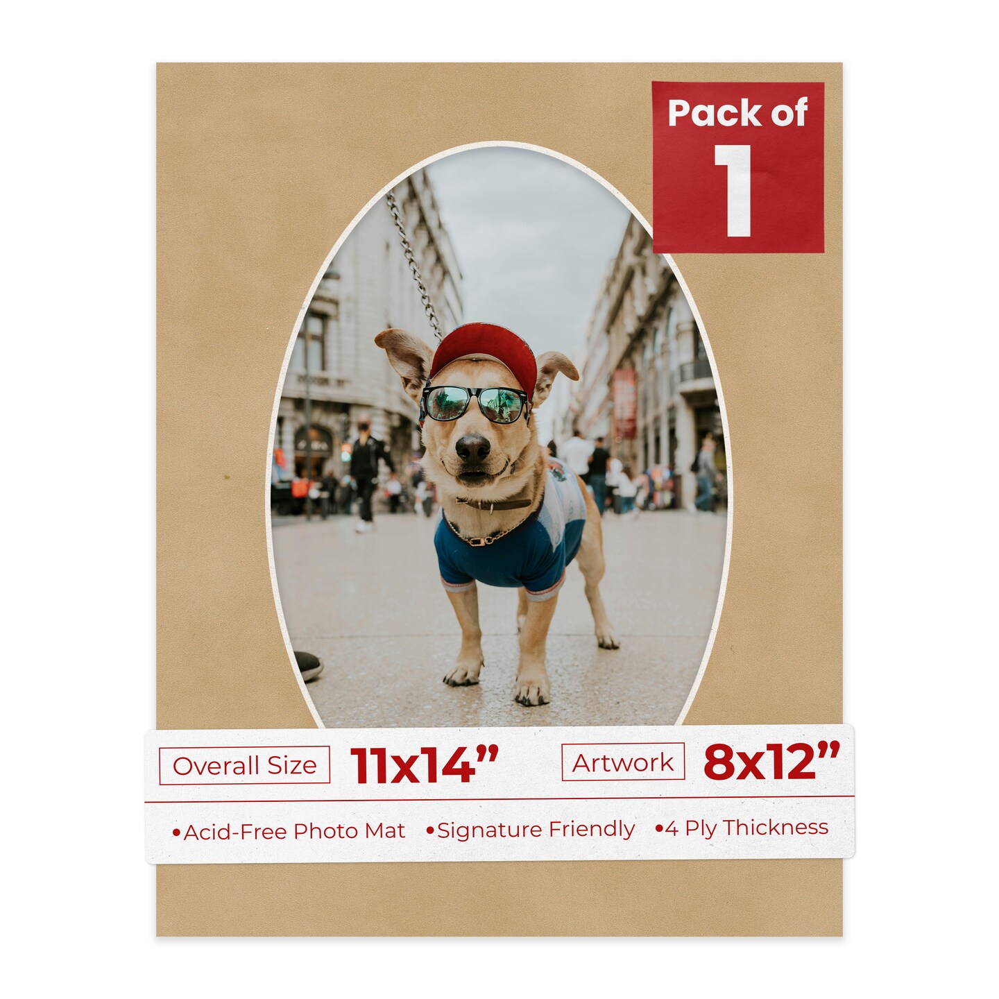 Beige Suede Mat Board for 11x14 Frames - Oval Opening for 8x12 Photos