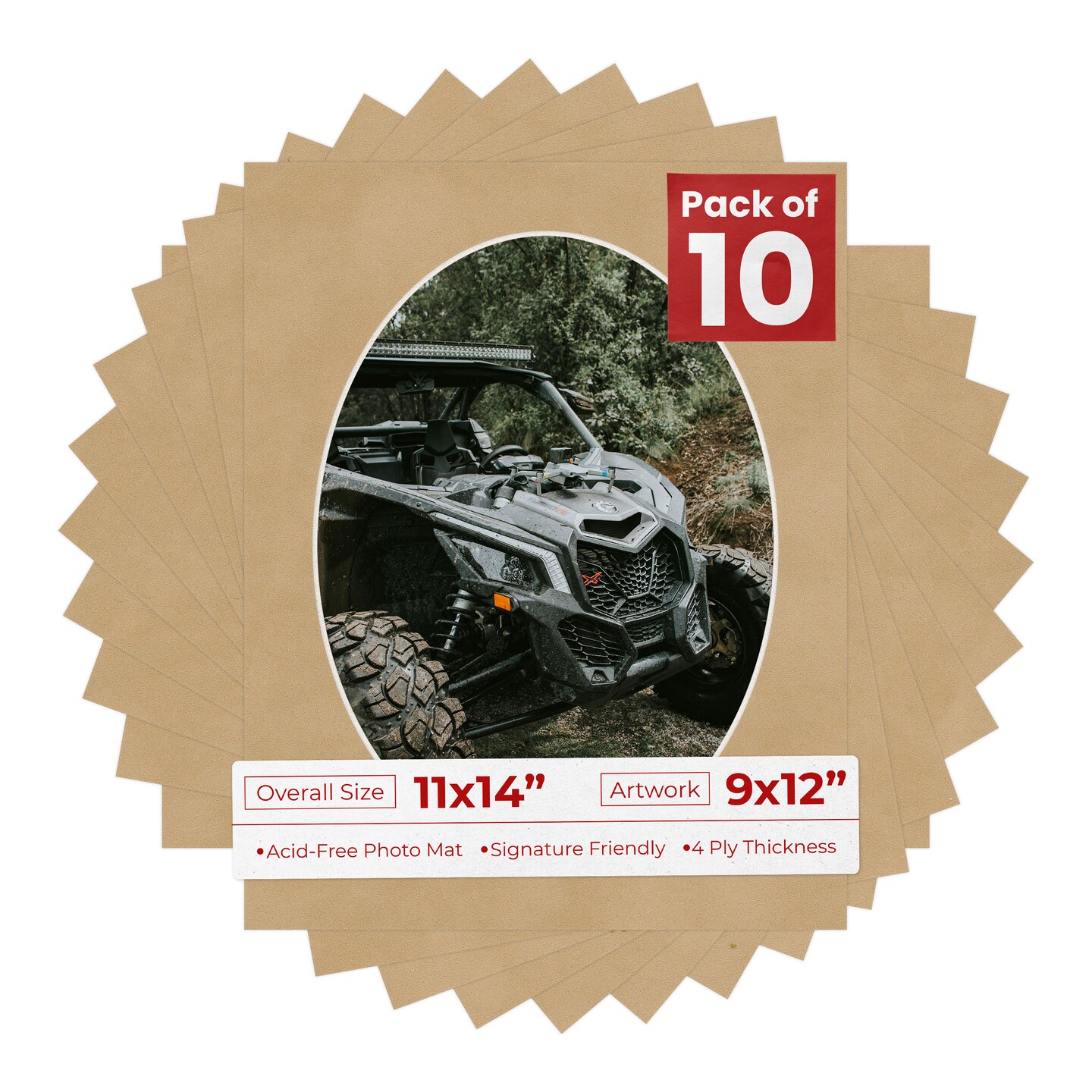 Beige Suede Mat Board for 11x14 Frames - Oval Opening for 9x12 Photos