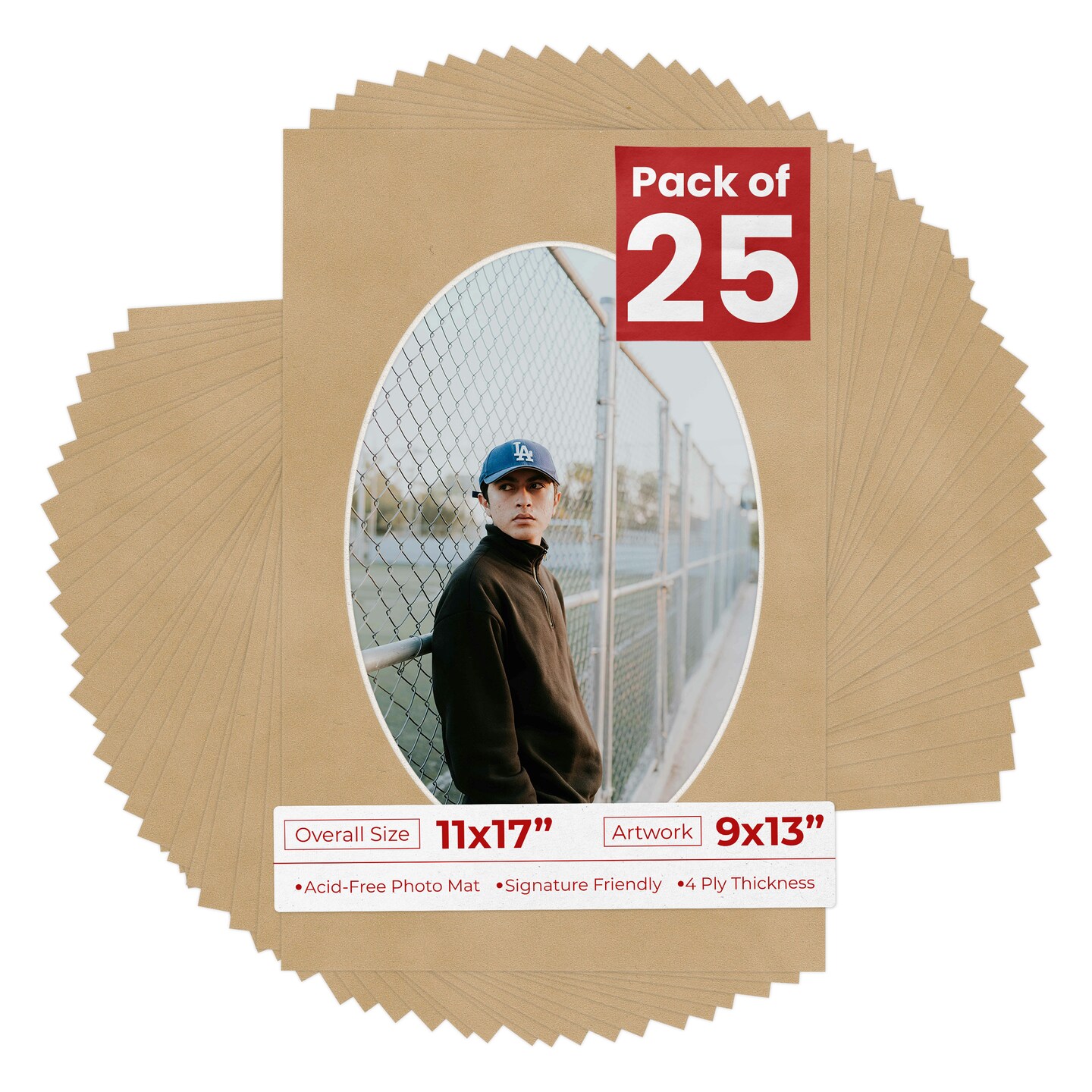 Beige Suede Mat Board for 11x17 Frames - Oval Opening for 9x13 Photos