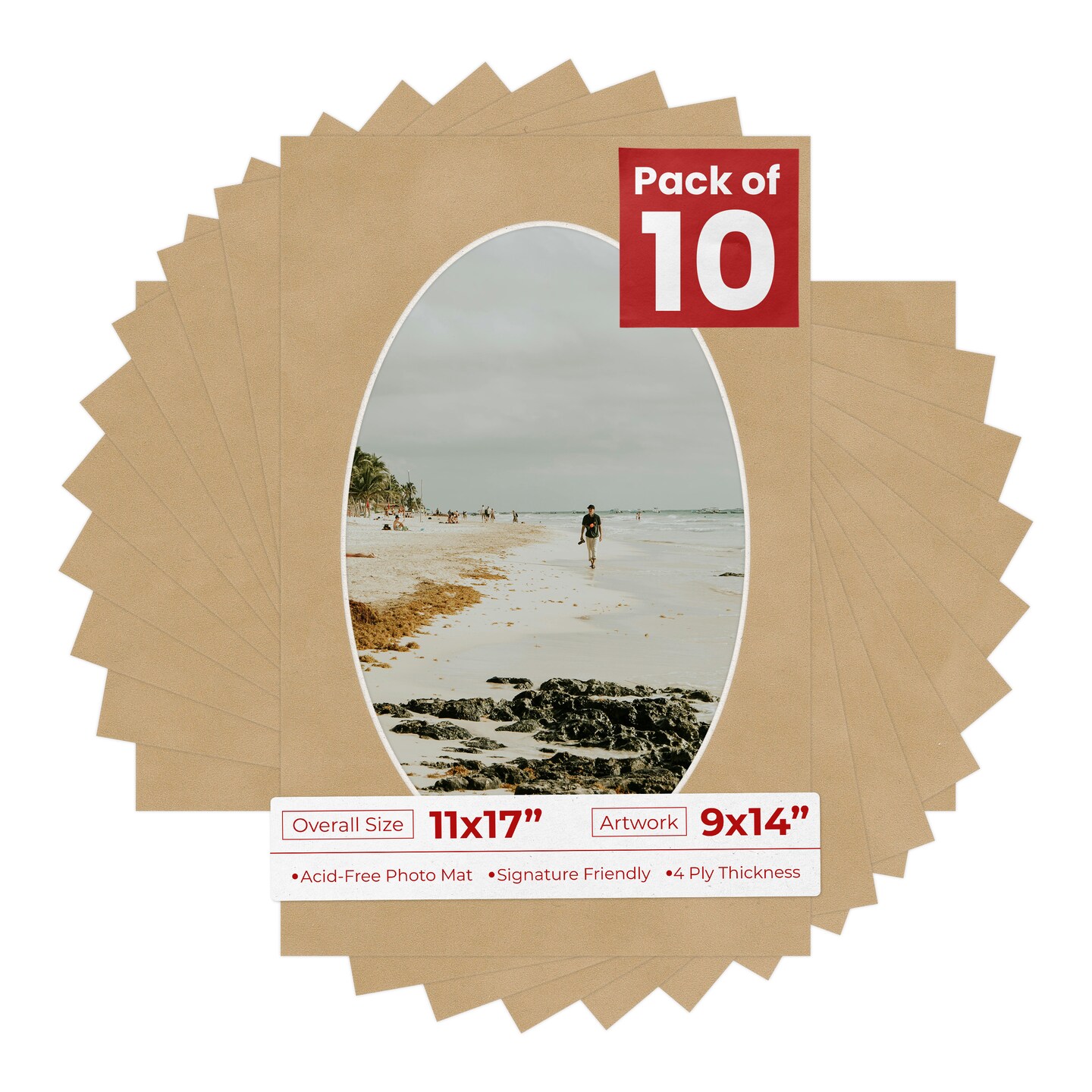 Beige Suede Mat Board for 11x17 Frames - Oval Opening for 9x14 Photos