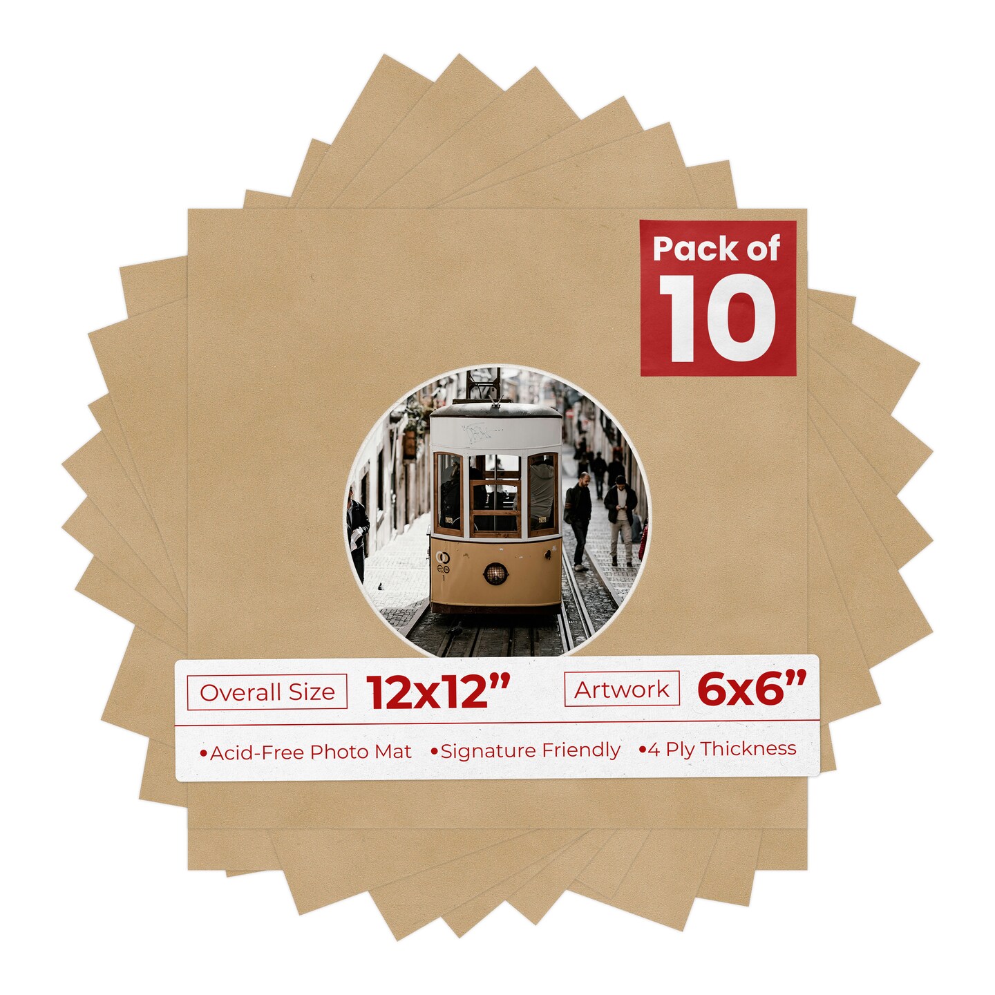 Beige Suede Mat Board for 12x12 Frames - Circle Opening for 6x6 Photos