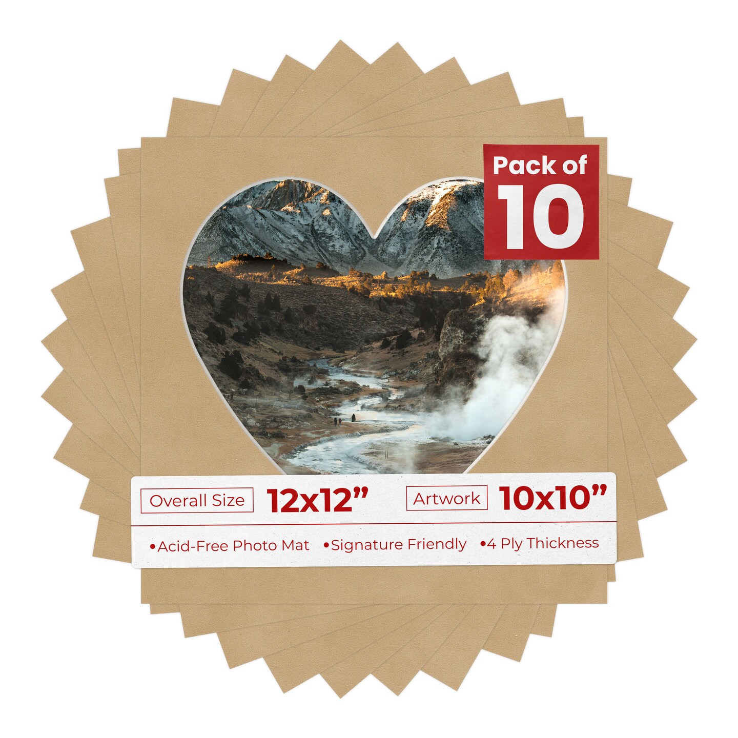 Beige Suede Mat Board for 12x12 Frames - Heart Opening for 10x10 Photos